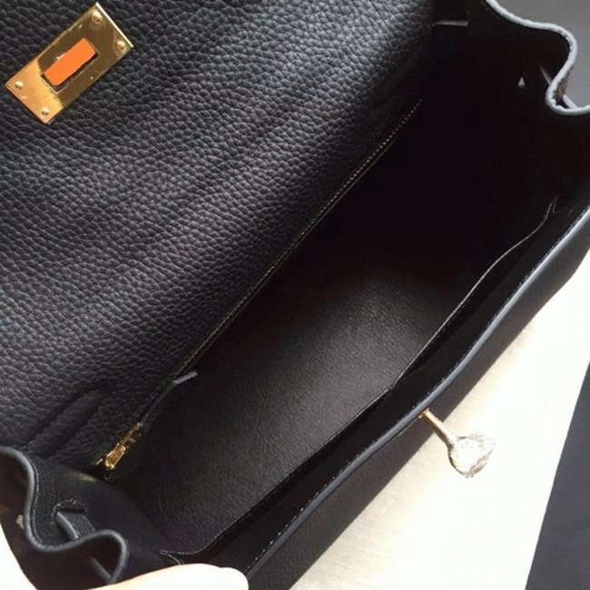 Black Clemence Copy Hermes Kelly Retourne 28cm Luxe Handbag