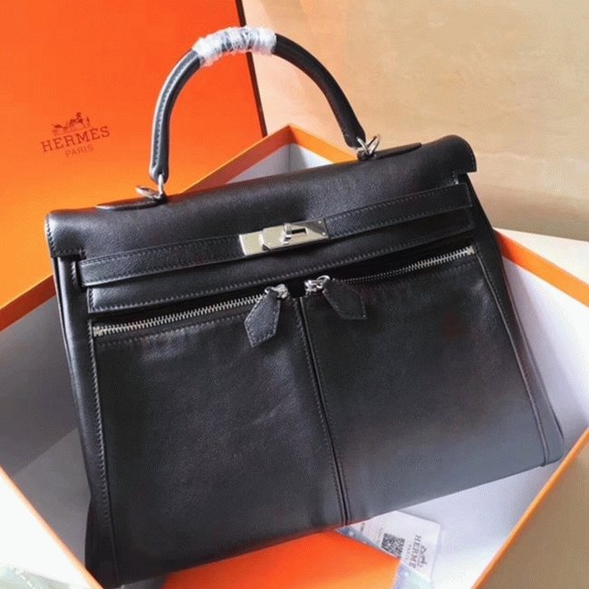 Black Fake Hermes Kelly Lakis 35cm Functional Designer Bag
