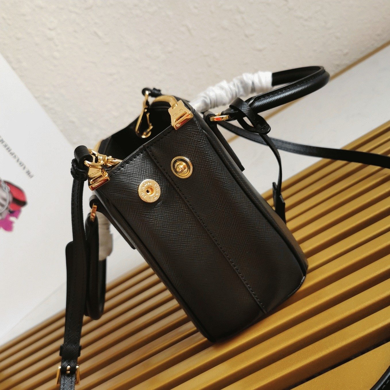 The Prada Galleria bag, assembled from 83 individual components, showcases a blend of industrial precision and meticulous handcrafting. Its design is elegant yet highly functional, representing a perfect balance of form and utility, combining traditional heritage with modern styling. Recognized as a symbol of timelessness, the Galleria bag embodies Pradas signature identity in the 21st century. The mini version is crafted from the brands iconic Saffiano leather, patented by the founder, which features a distinctive crosshatch texture and waxed finish.