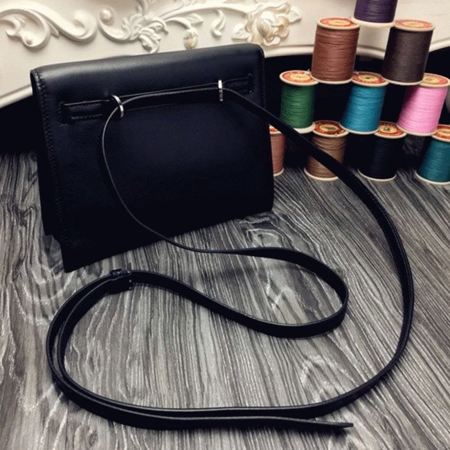 Black Swift Leather Replica Hermes Kelly Danse Versatile Handbag