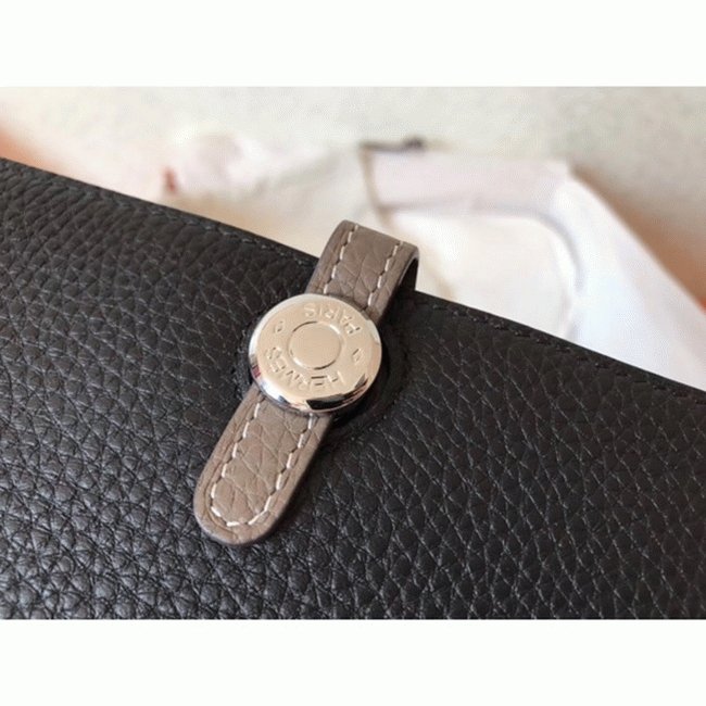 The Hermes Dogon Wallet is a classic piece, thoughtfully designed with a refined and elegant touch. It features a sleek leather strap and the iconic Clou de Selle tab engraved with Hermes Paris, reflecting the brands heritage. Based on the Combined style, it includes a detachable zip coin purse for added convenience. The wallet’s well-organized interior includes five credit card slots, a compartment for banknotes, and two extra sections to keep daily items neatly stored. At the center, a silver-plated clasp provides both style and secure closure, making it a perfect option for carrying cards, cash, and coins.