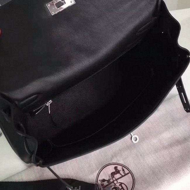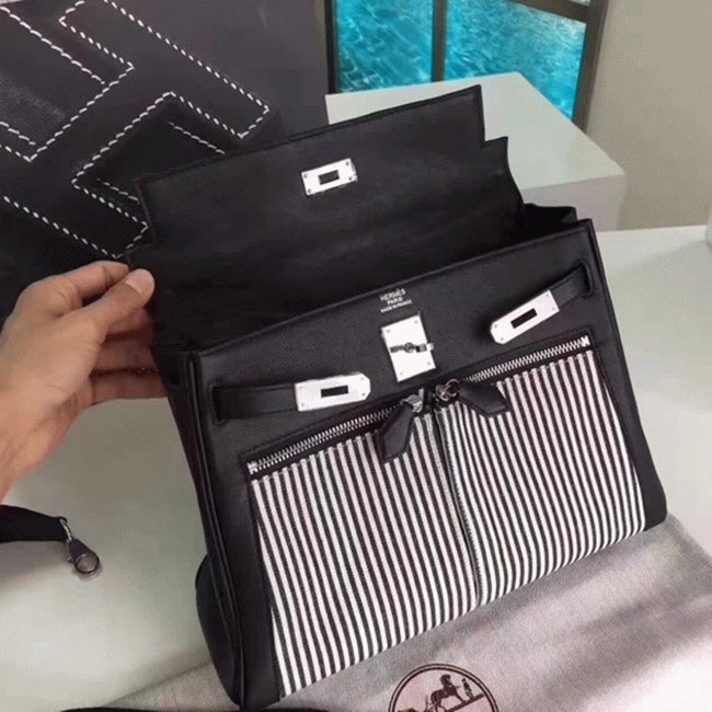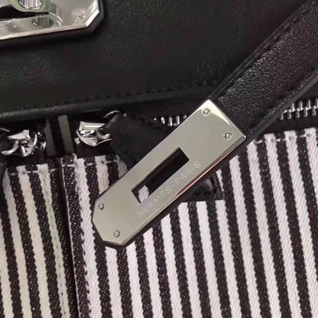 Black Toile Swift Knockoff Hermes Kelly Lakis 32cm Hybrid Bag