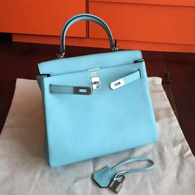 Blue Atoll Clemence Replica Hermes Kelly 25cm Retourne Handbag