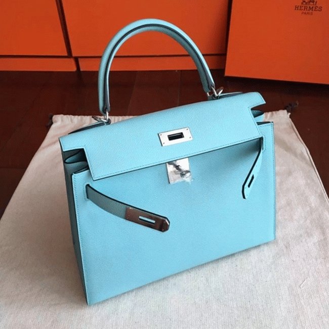 Blue Atoll Epsom Replica Hermes Kelly Sellier 28cm Vibrant Purse