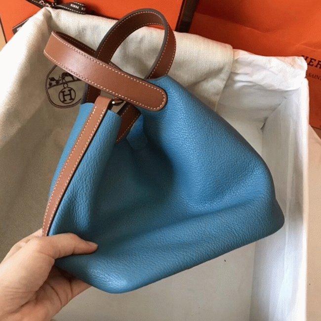 Blue jean 1:1 replica Hermes bicolor Picotin Lock 18cm handbag