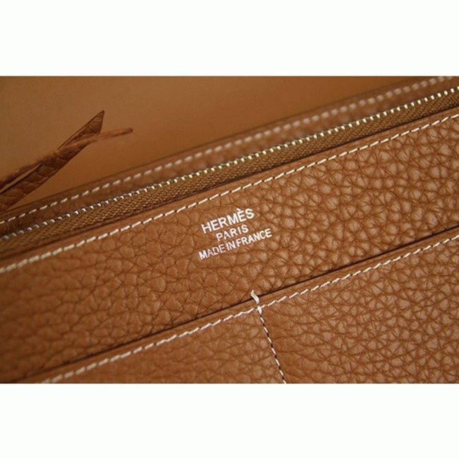 The Hermes Dogon Wallet is a classic piece, thoughtfully designed with a refined and elegant touch. It features a sleek leather strap and the iconic Clou de Selle tab engraved with Hermes Paris, reflecting the brands heritage. Based on the Combined style, it includes a detachable zip coin purse for added convenience. The wallet’s well-organized interior includes five credit card slots, a compartment for banknotes, and two extra sections to keep daily items neatly stored. At the center, a silver-plated clasp provides both style and secure closure, making it a perfect option for carrying cards, cash, and coins.