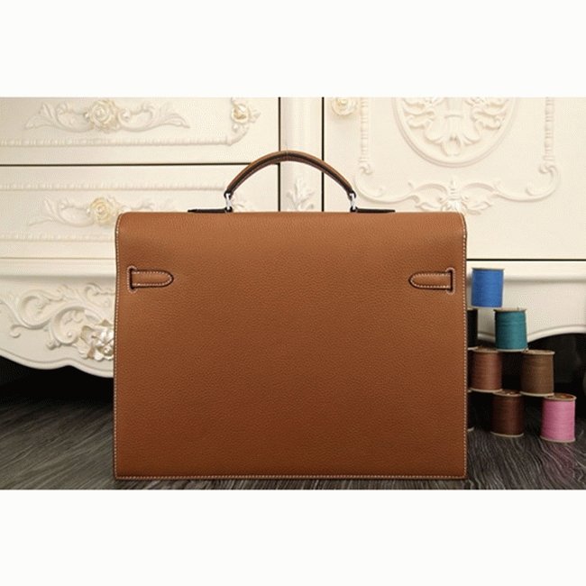 Brown Calf Leather Fake Hermes Kelly Depeche 38cm Briefcase