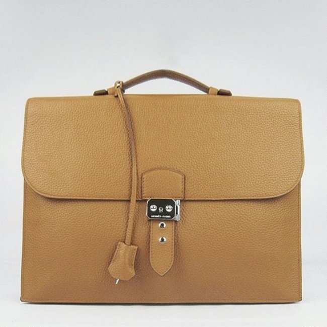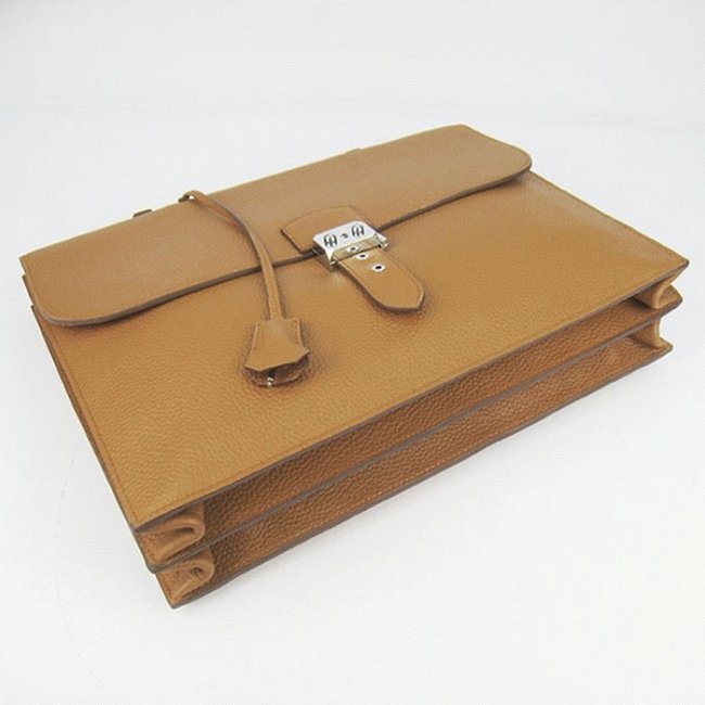 Brown Calf Leather Fake Hermes Sac A Depeches 38cm Briefcase