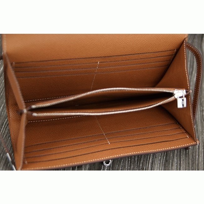 Brown fake designer Hermes Kelly Longue wallet