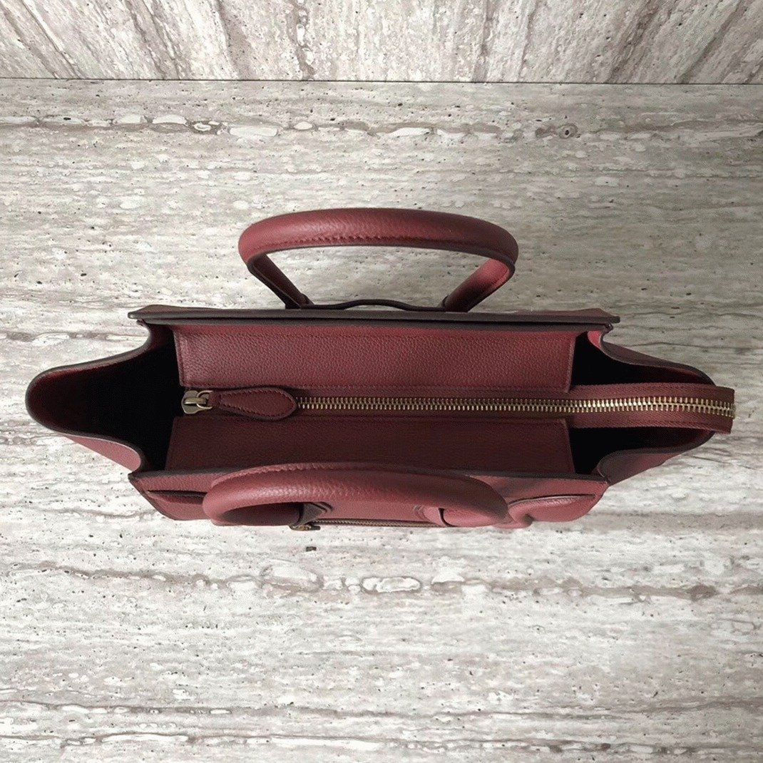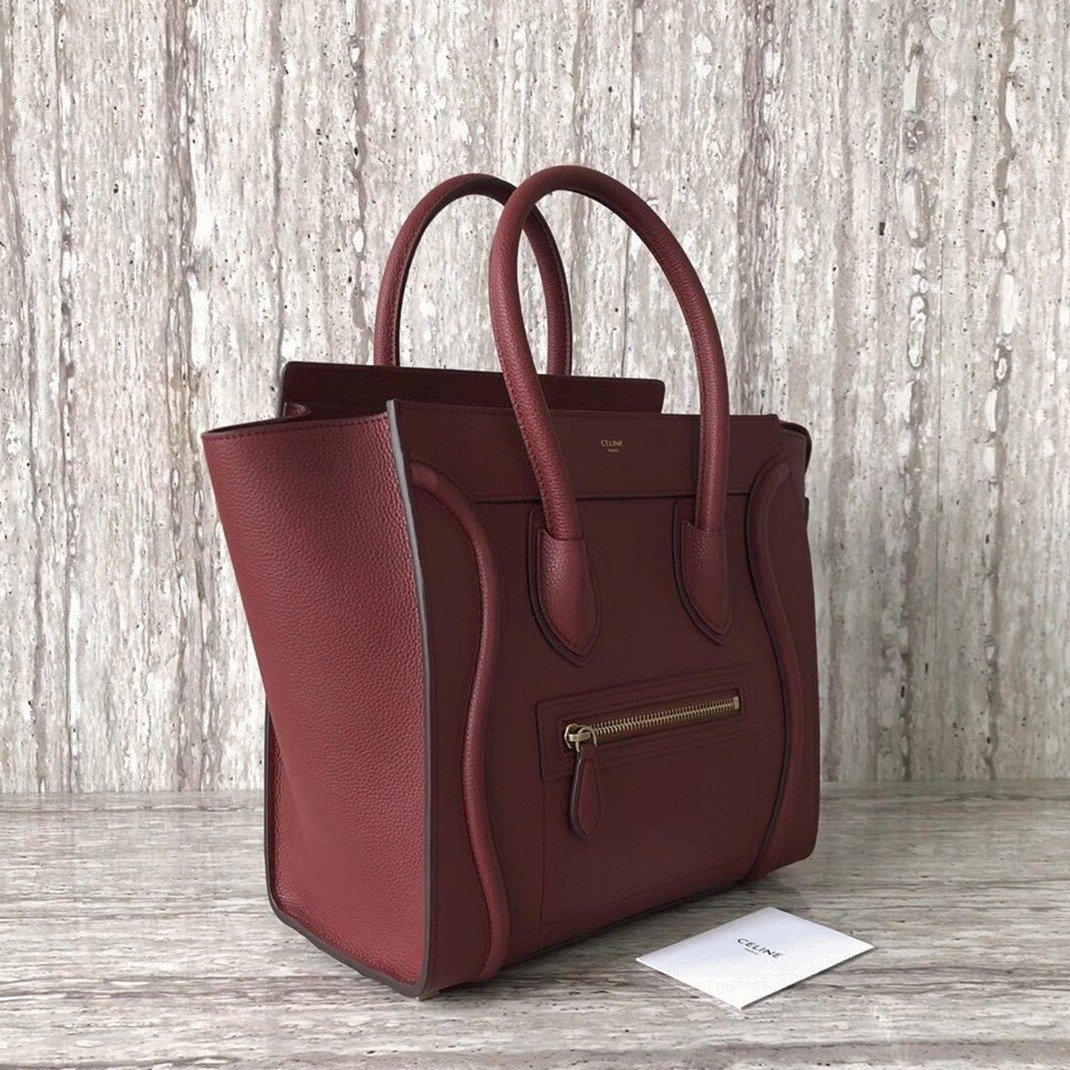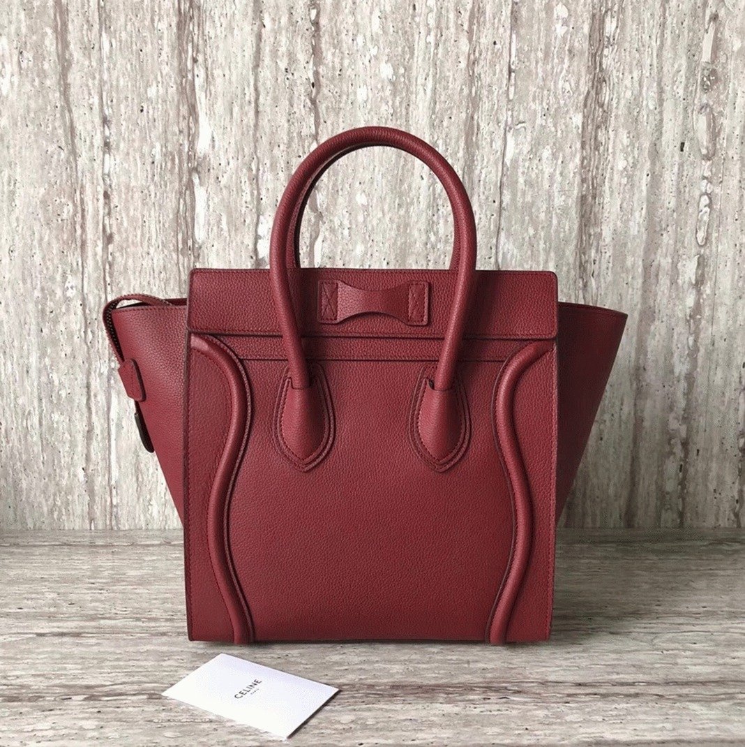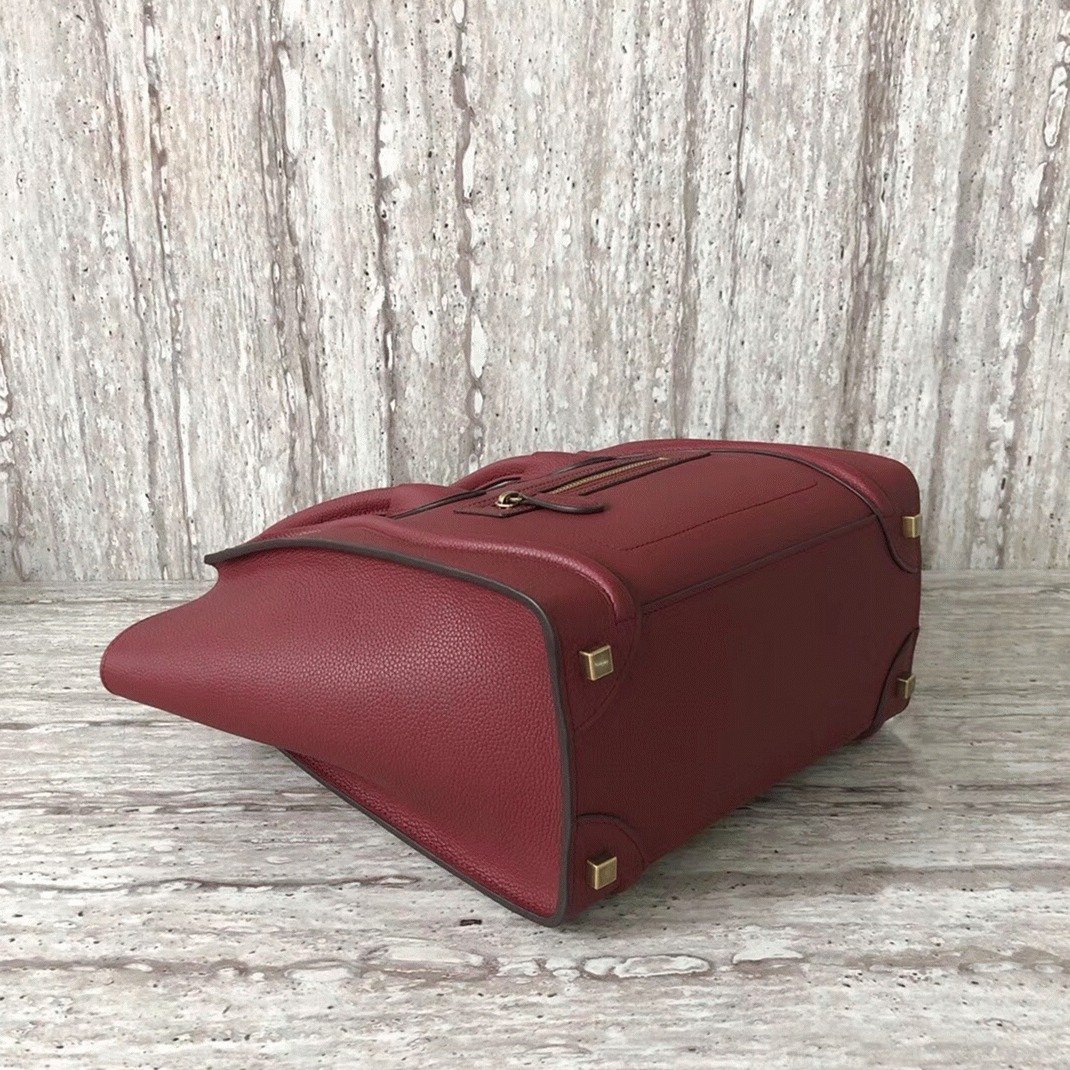 Celine Micro Luggage Tote Bag Knockoff in Dark Red