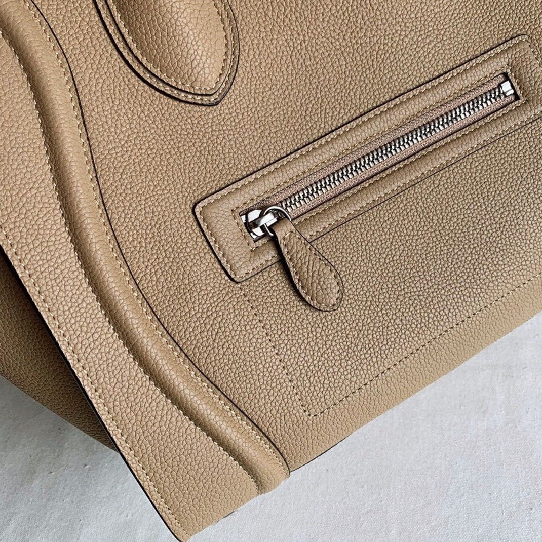 The Celine Luggage Tote continues to be one of the most coveted handbags worldwide. Its blend of relaxed elegance and sophisticated design makes it instantly recognizable, thanks to its structured shape, sturdy top handles, and intricate stitching. The Mini Luggage Tote features the iconic zip-front and top handles, crafted from drummed calfskin with a soft suede interior.