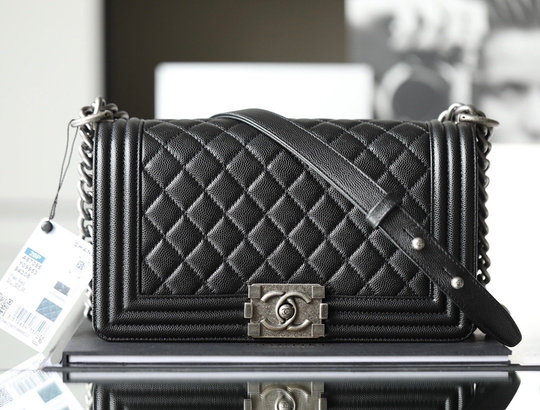 Chanel Boy Sliver Hardware Caviar Cow Leather