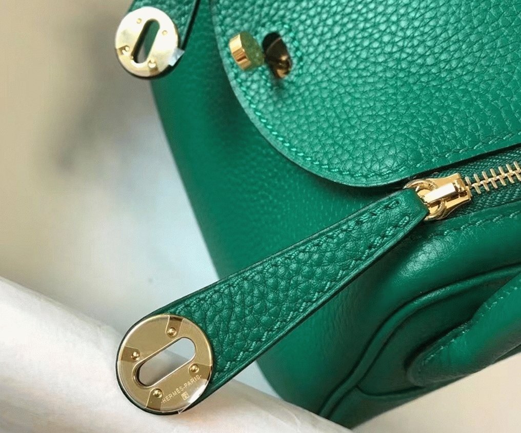 Designer replica Hermes Lindy Mini handbag in green clemence leather