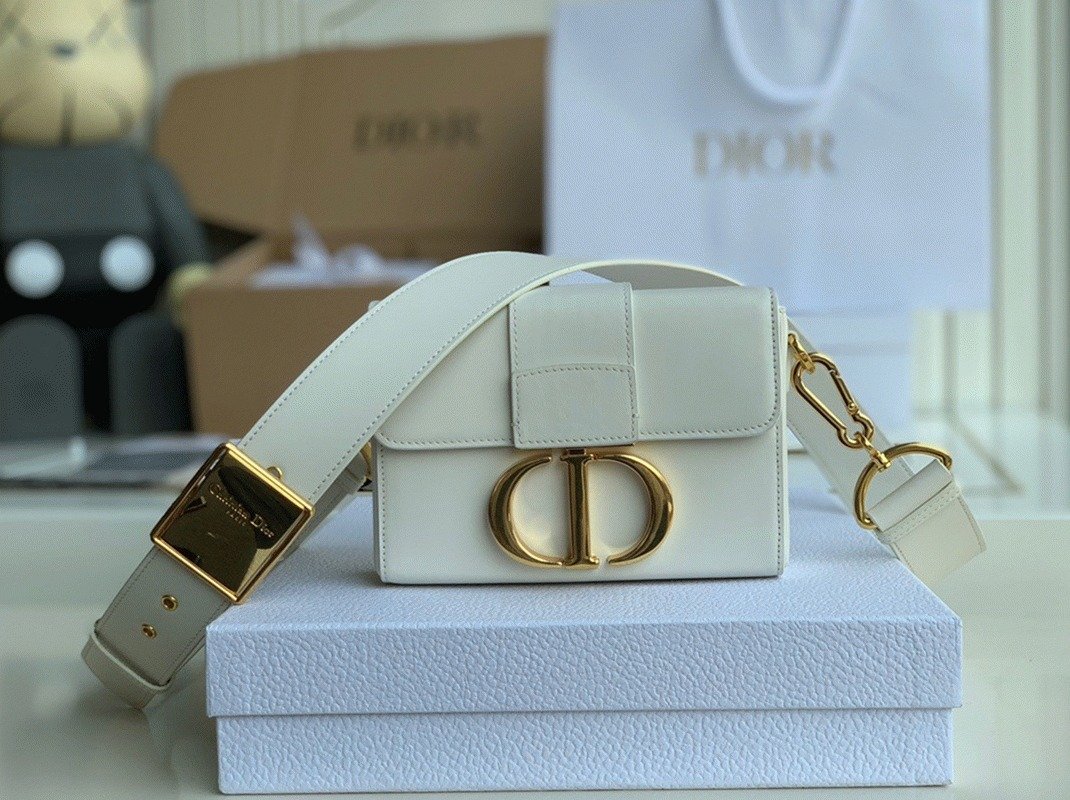 Dior 30 Montaigne Box Bag Knockoff in White Box Calfskin