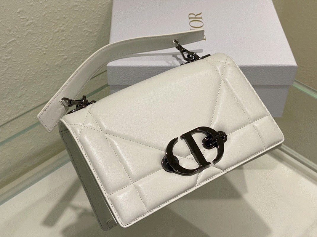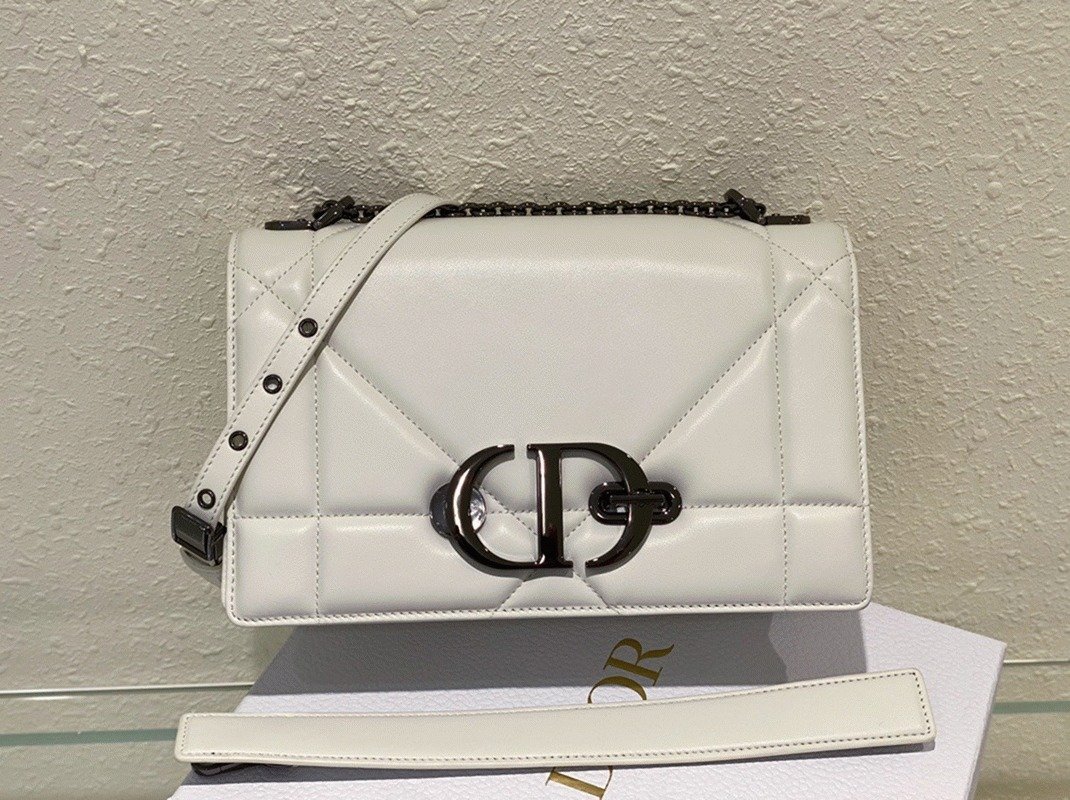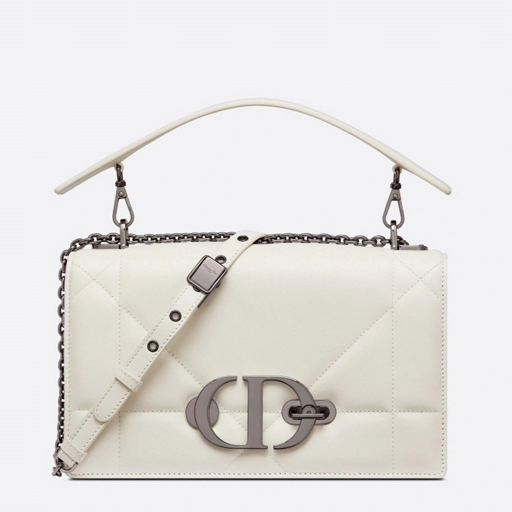 Dior 30 Montaigne Chain Bag with Handle Replica in White Lambskin