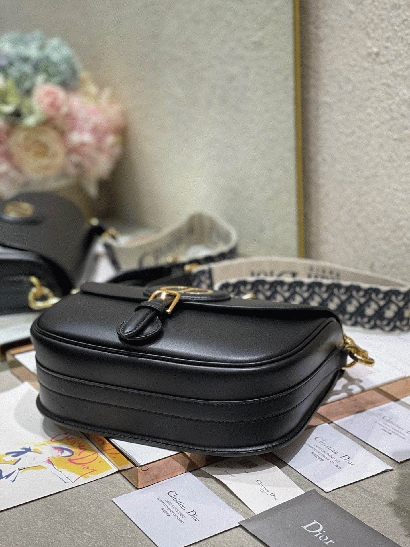 This Dior Bobby hobo bag is distinguished by its graceful design and balanced silhouette. Constructed from luxurious box calfskin with a suede-lined interior, it is finished with antique gold-tone hardware. The wide shoulder strap features blue Dior Oblique embroidery, enabling various styling options including hand carry, shoulder wear, or crossbody.