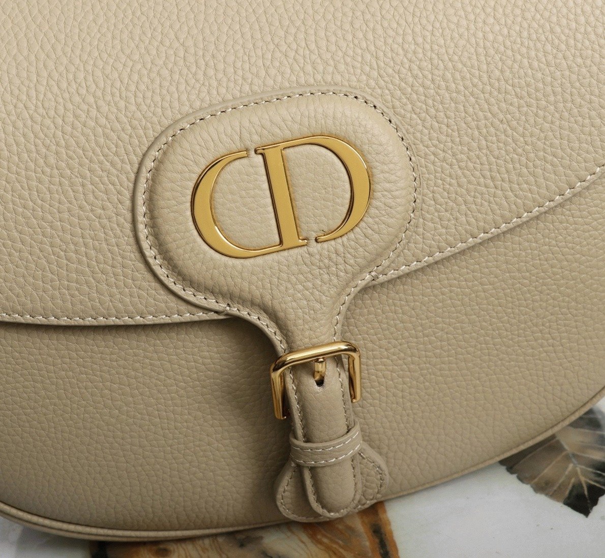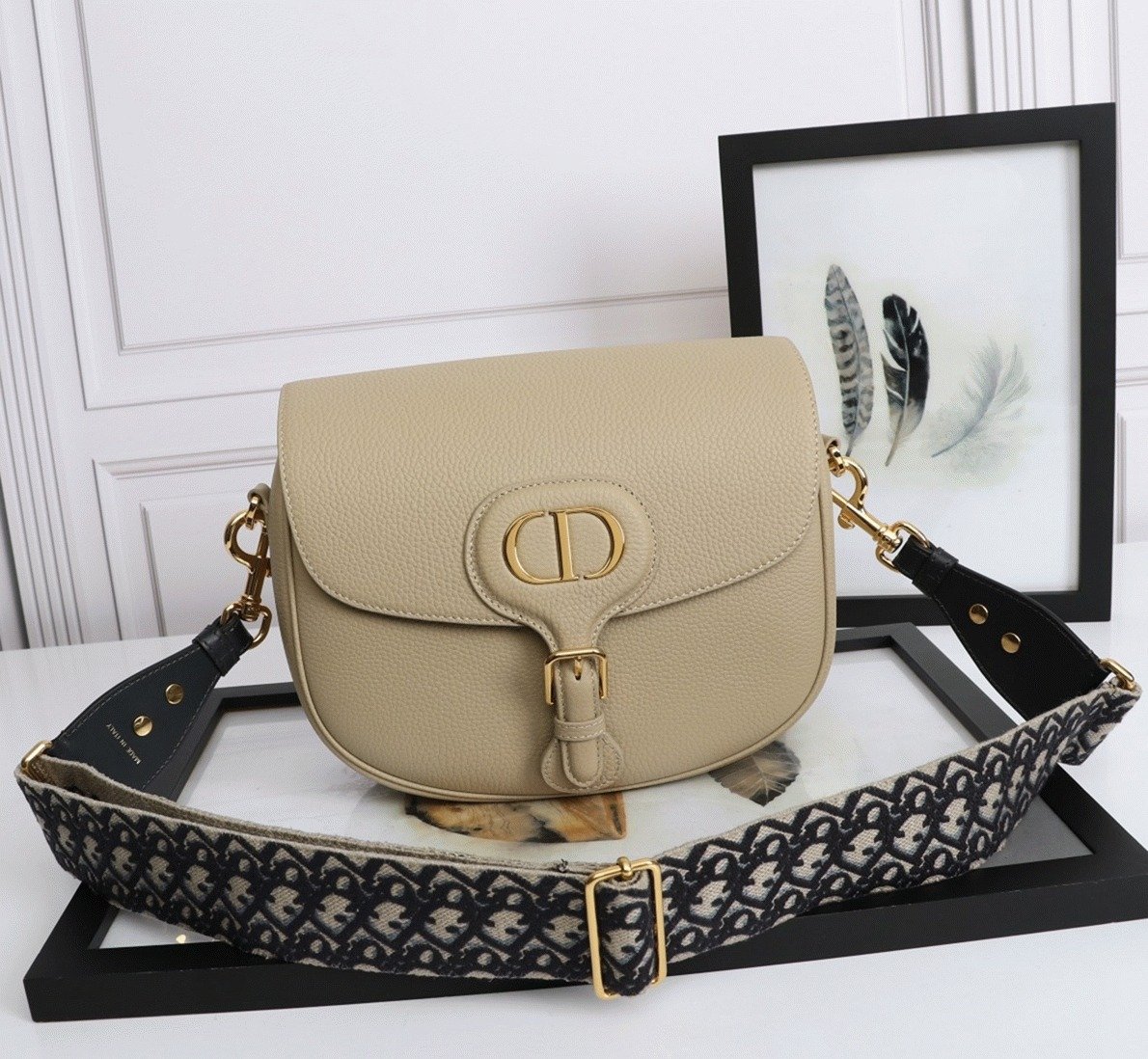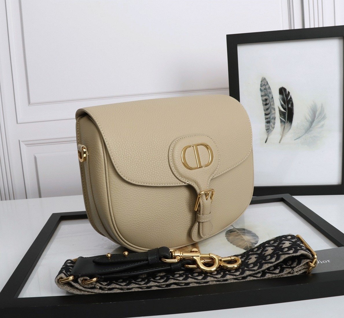 The Dior Bobby bag is a hobo-style design distinguished by its elegant shape and balanced proportions. This larger model is crafted from premium box calfskin and features a soft suede calfskin interior, complemented by antique gold-finish metal hardware. It comes with a wide strap embroidered with blue Dior Oblique, allowing versatile wear by hand, over the shoulder, or crossbody for a casual look.