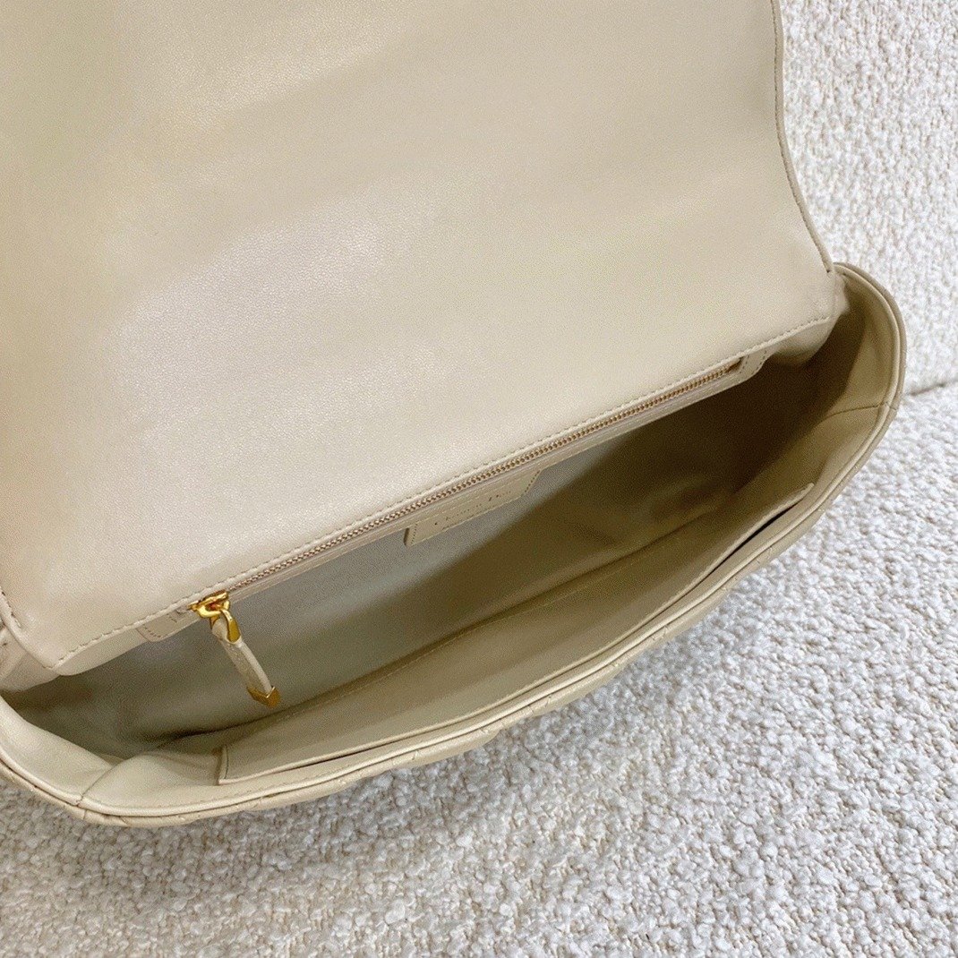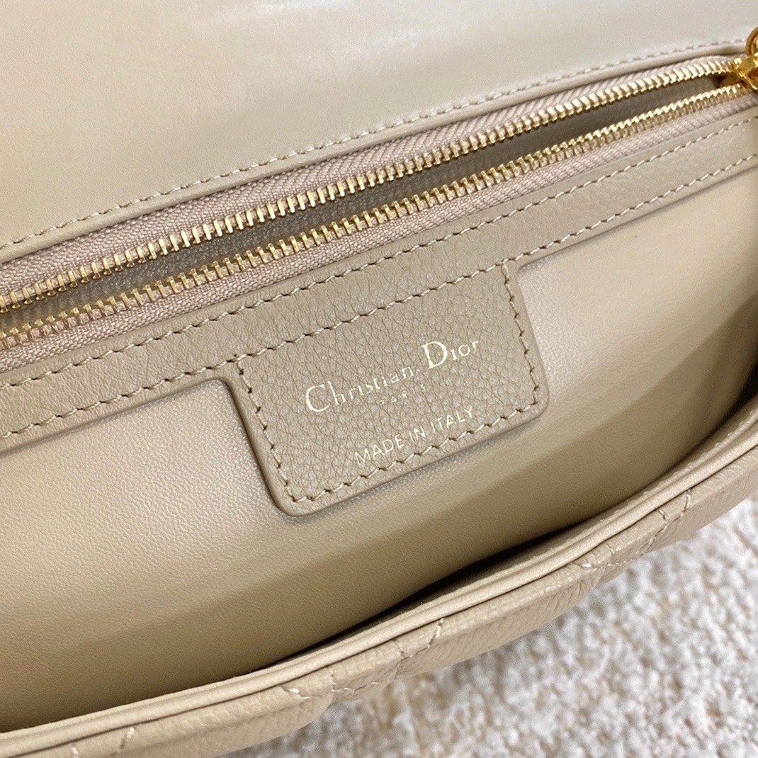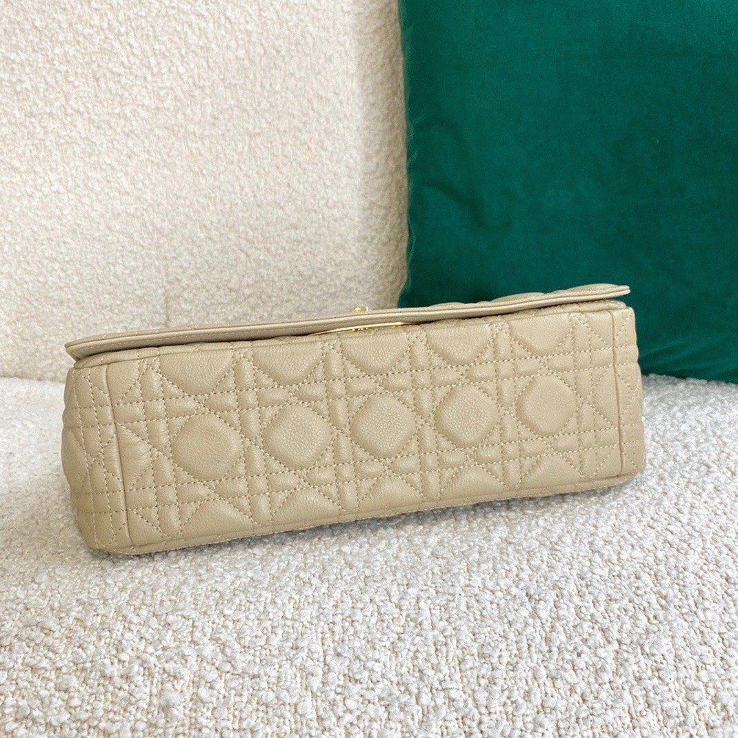 The Dior Caro bag perfectly merges modern flair with timeless sophistication. Made from soft calfskin leather, it features the signature Cannage stitching throughout. Its flap is secured by an antique gold-finished metal ‘CD’ twist clasp, inspired by the seal on Christian Dior perfume bottles. The bag includes a detachable chain shoulder strap with ‘CD’ signature links, allowing it to be carried by hand, over the shoulder, or worn crossbody. For added versatility, this strap can be replaced with one of Diors wide embroidered straps, making the bag ideal for both day and evening looks.