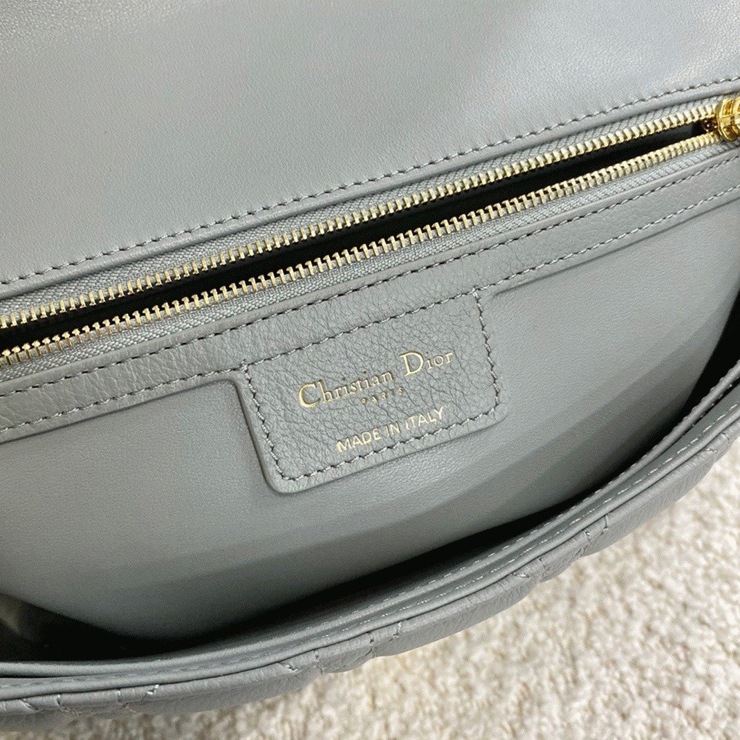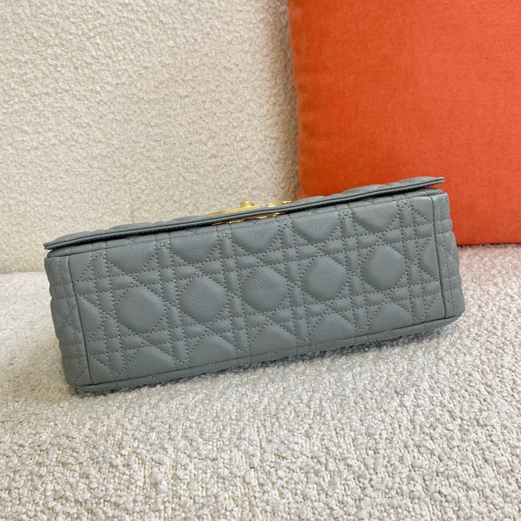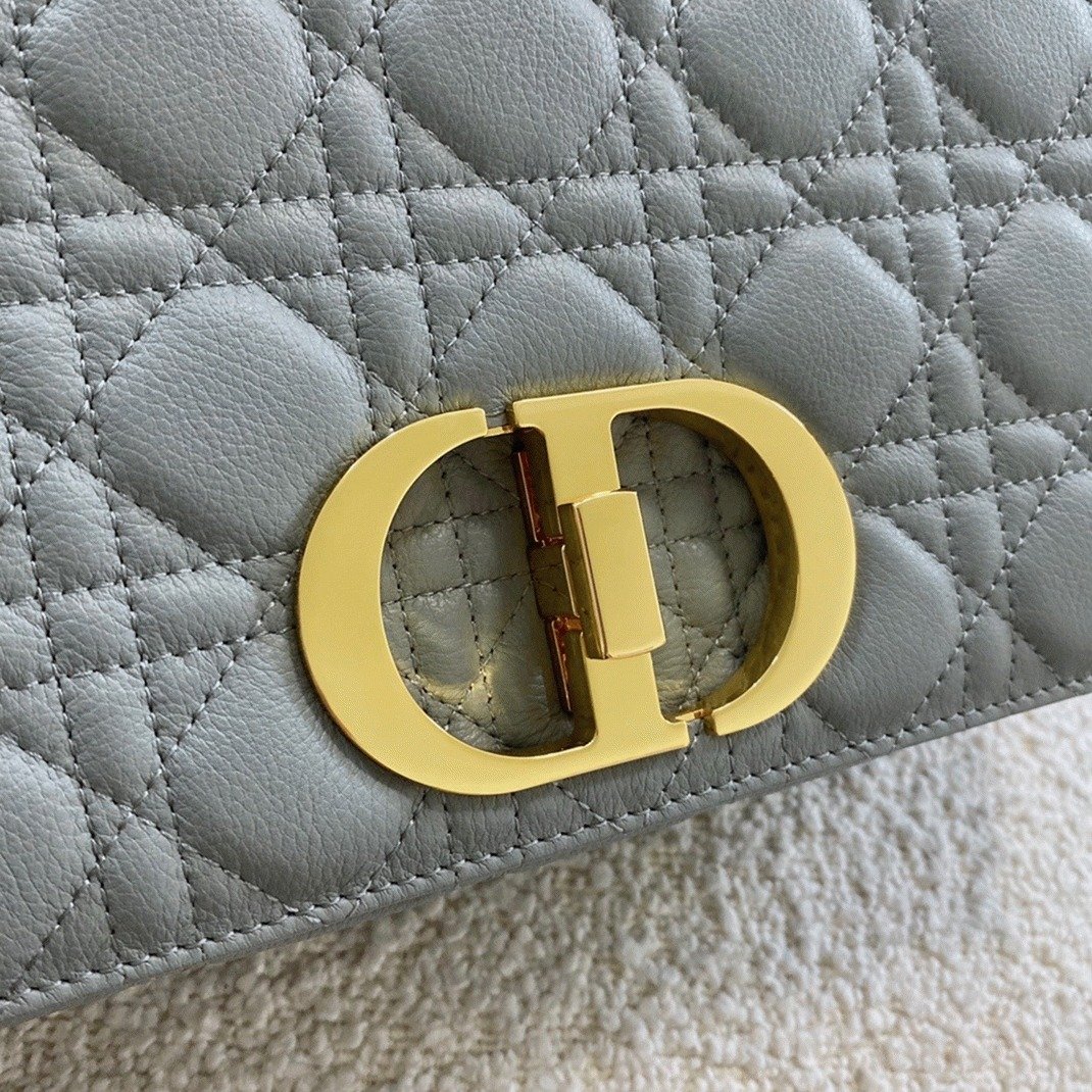 The Dior Caro bag perfectly merges modern flair with timeless sophistication. Made from soft calfskin leather, it features the signature Cannage stitching throughout. Its flap is secured by an antique gold-finished metal ‘CD’ twist clasp, inspired by the seal on Christian Dior perfume bottles. The bag includes a detachable chain shoulder strap with ‘CD’ signature links, allowing it to be carried by hand, over the shoulder, or worn crossbody. For added versatility, this strap can be replaced with one of Diors wide embroidered straps, making the bag ideal for both day and evening looks.