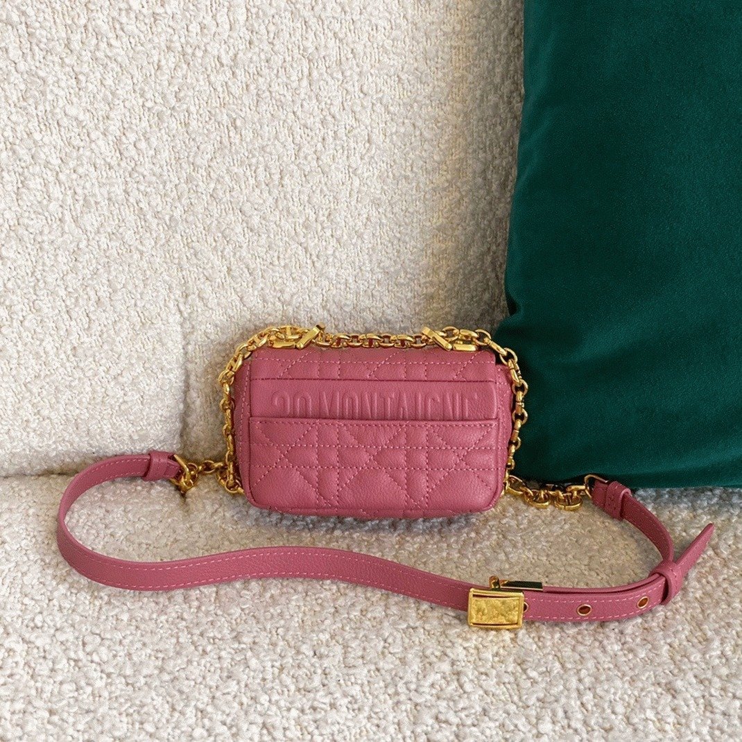 The Dior Caro bag perfectly merges modern design with timeless sophistication. Made from soft calfskin leather, it features the iconic Cannage stitching. The flap is secured by an antique gold-tone metal ‘CD’ twist clasp, inspired by the seal of Christian Dior perfume bottles. The detachable chain shoulder strap, decorated with ‘CD’ signature links, allows for multiple ways to carryby hand, on the shoulder, or crossbody. This strap can be replaced with one of Diors wide embroidered straps, offering versatility for both casual and formal occasions.