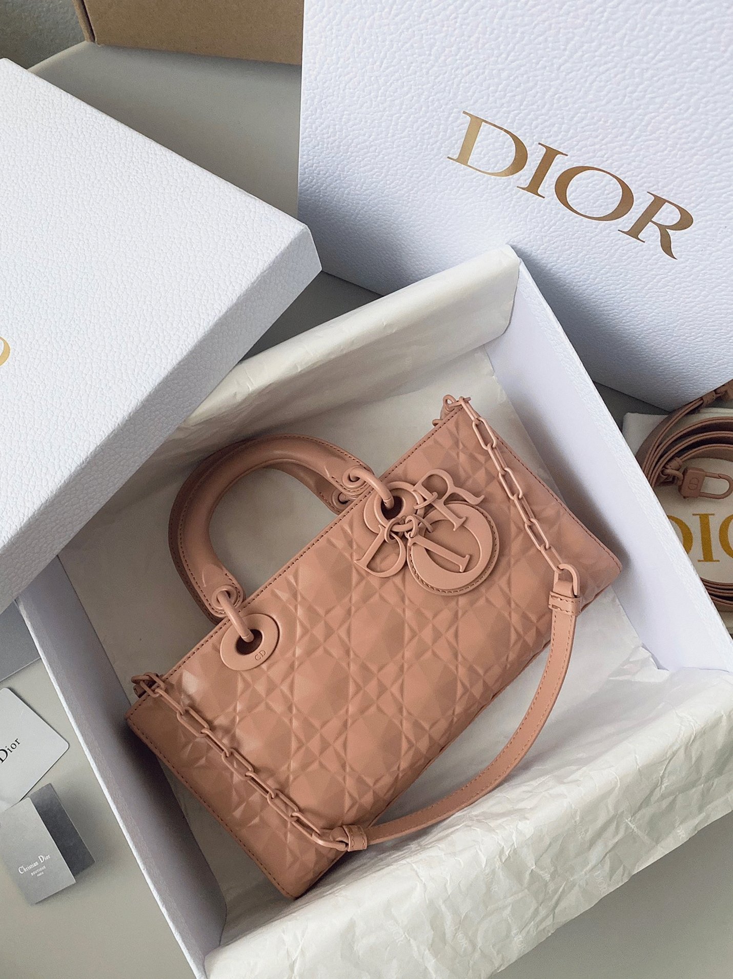 Dior Lady D-Joy Medium Bag Faux in Nude Calfskin with Diamond Motif