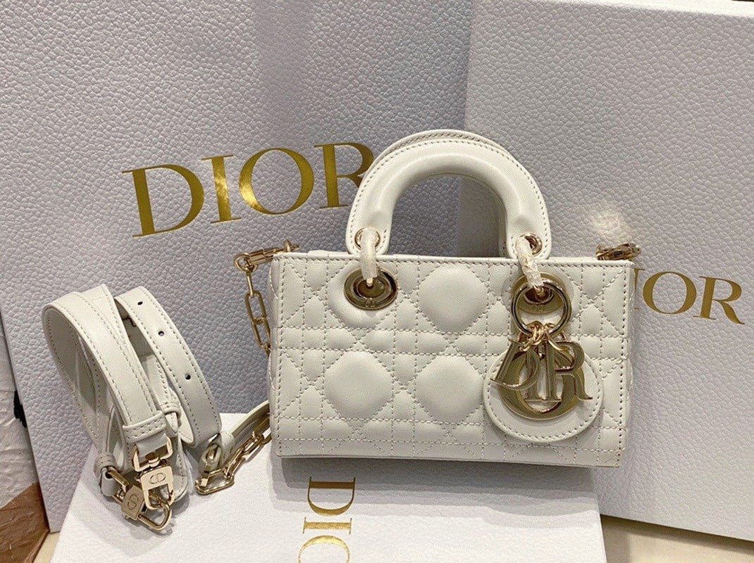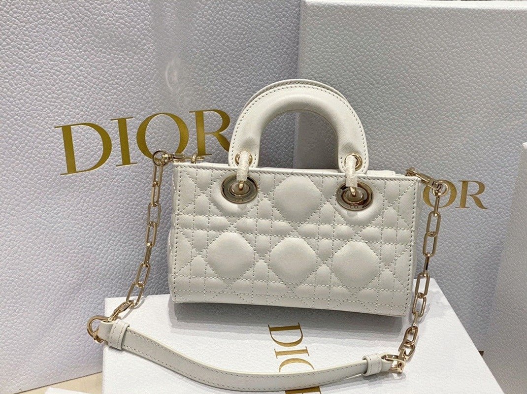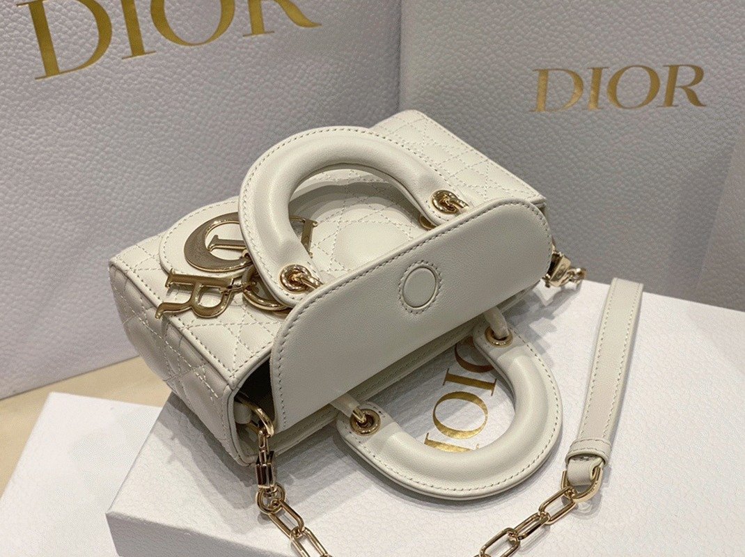 The Lady D-Joy bag embodies Dior’s vision of elegance and beauty with the signature Lady Dior style. Crafted from soft lambskin and detailed with Cannage stitching, it is beautifully accented by a pale gold-finished metal ‘D.I.O.R.’ charm. The Lady D-Joy Micro Bag comes with a removable chain strap and an additional adjustable, removable leather strap, allowing it to be carried by hand or worn over the shoulder.