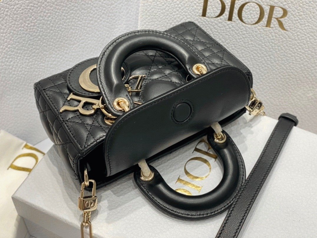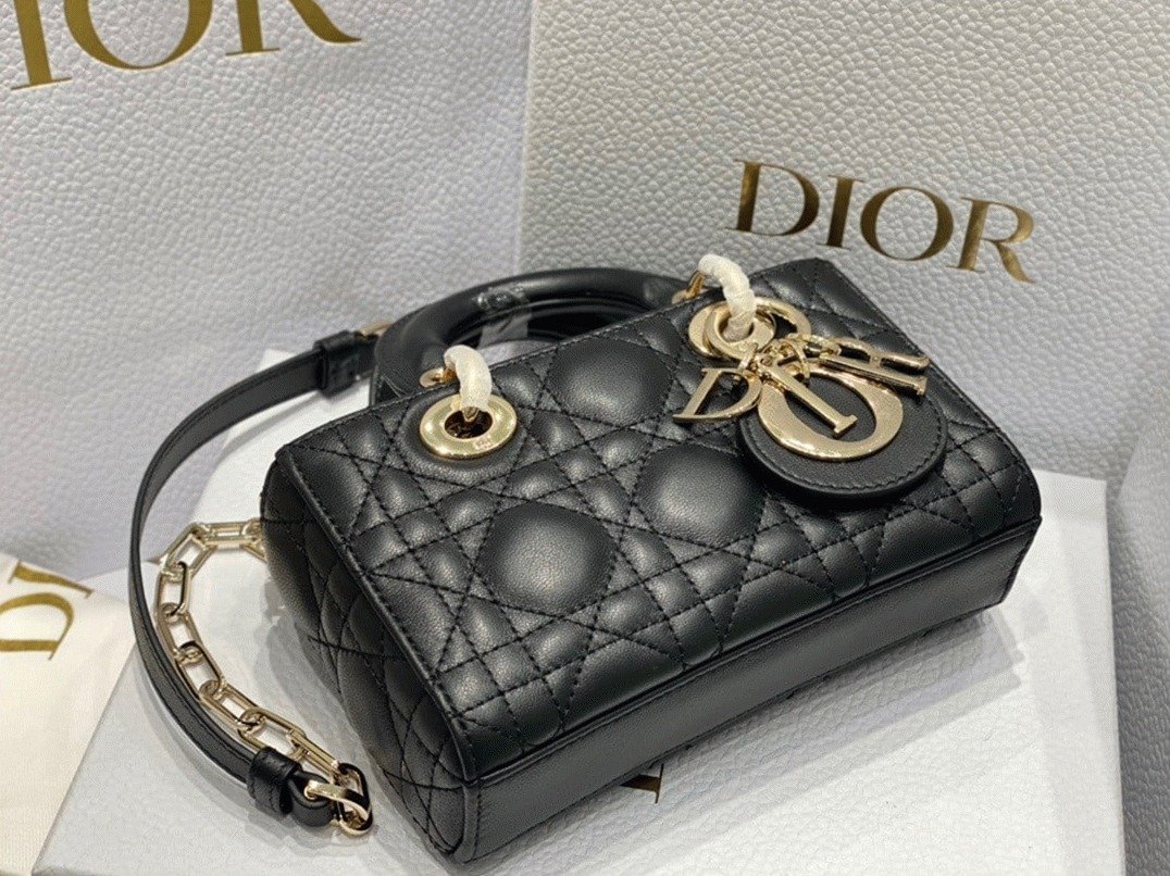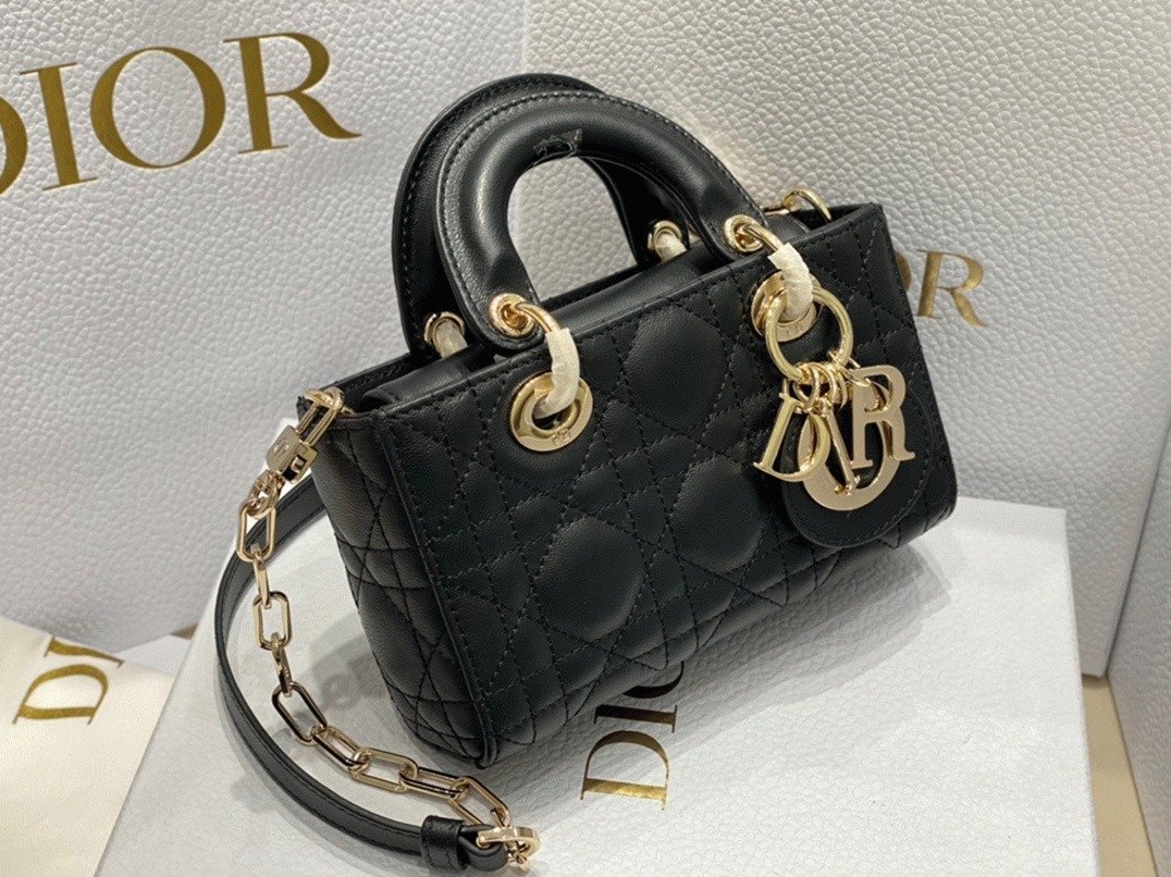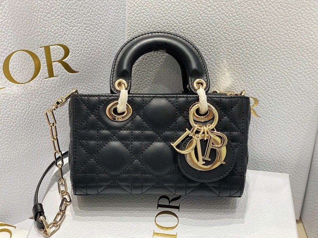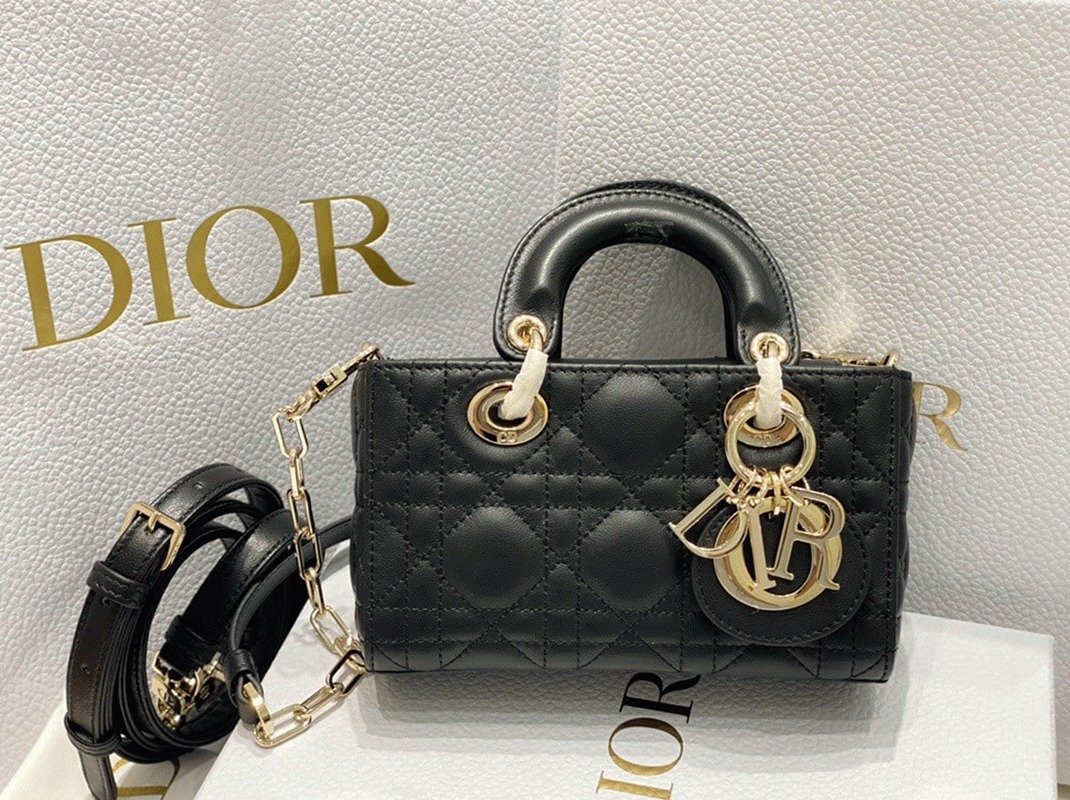 The Lady D-Joy bag embodies Dior’s vision of elegance and beauty with the signature Lady Dior style. Crafted from soft lambskin and detailed with Cannage stitching, it is beautifully accented by a pale gold-finished metal ‘D.I.O.R.’ charm. The Lady D-Joy Micro Bag comes with a removable chain strap and an additional adjustable, removable leather strap, allowing it to be carried by hand or worn over the shoulder.