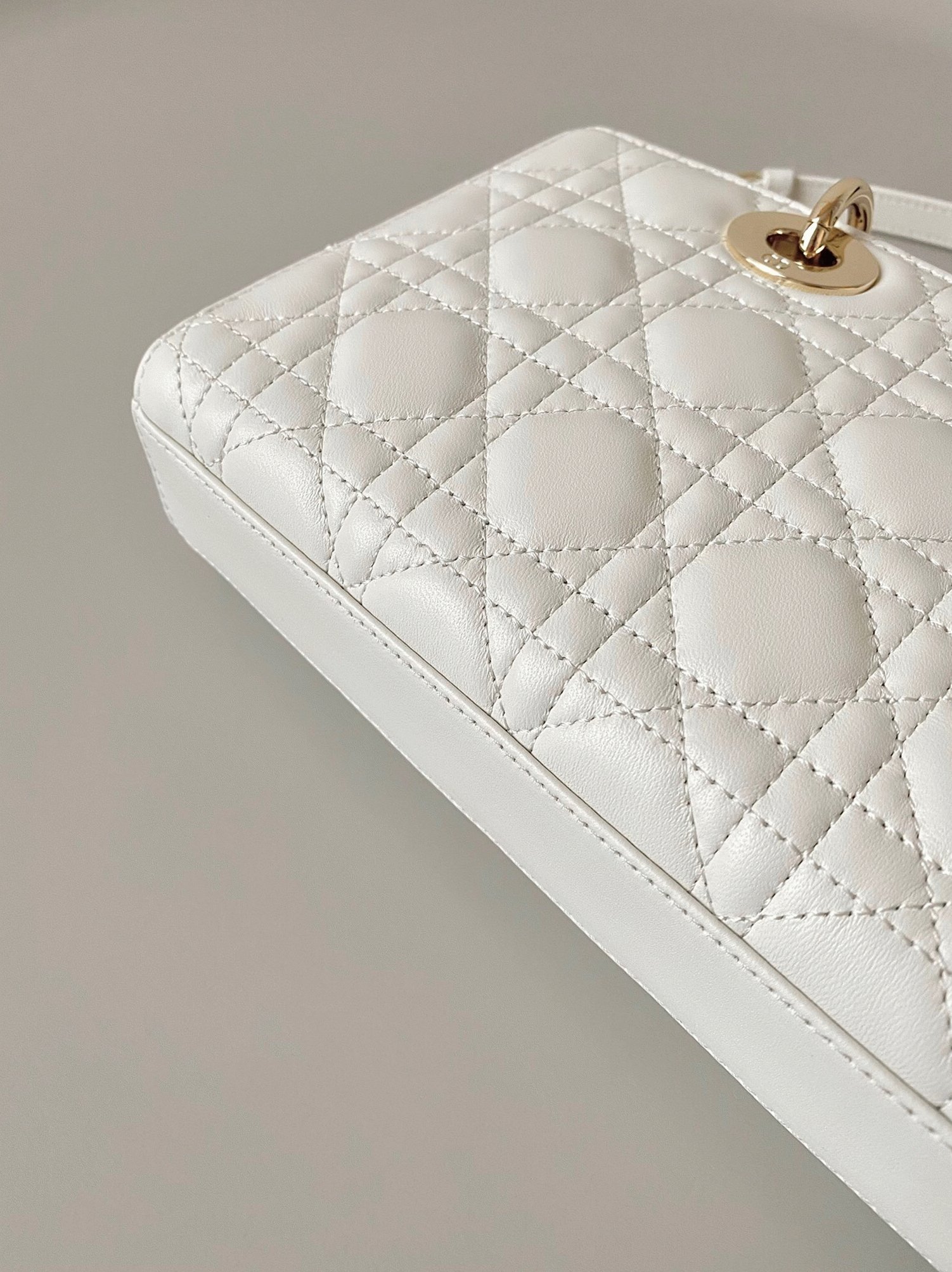 The Lady D-Joy bag reflects Dior’s timeless interpretation of elegance, capturing the essence of the iconic Lady Dior line with its refined, elongated shape. Crafted from ultramatte calfskin and detailed with the signature Cannage stitching, the bags quilted finish offers a luxurious and instantly recognizable texture. The matte ‘D.I.O.R.’ metal charms delicately enhance its minimalist silhouette.