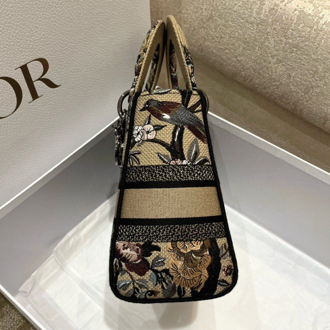 Dior Lady D-Lite Medium Bag Fake in Beige Jardin d Hiver Embroidery