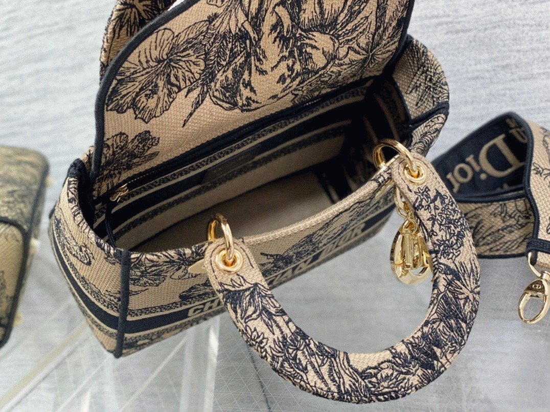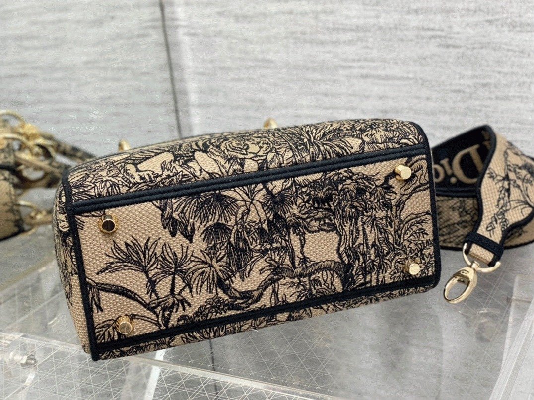 Dior Lady D-Lite Medium Bag Fake in Beige Toile de Jouy Voyage Embroidery
