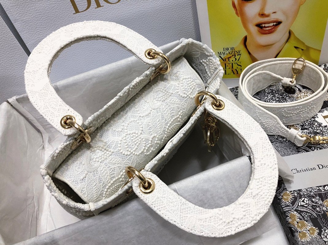 Dior Lady D-Lite Medium Bag Fake in Embroidery with Macrame Effect
