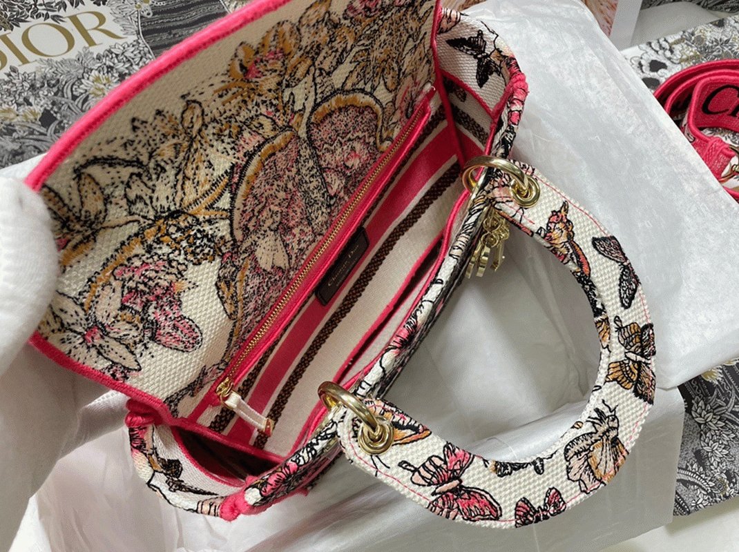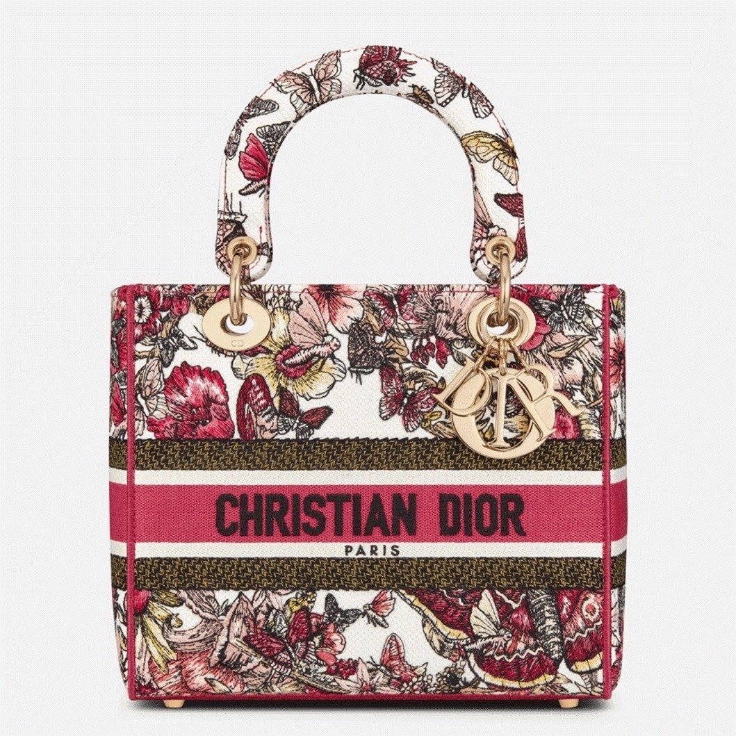 Dior Lady D-Lite Medium Bag Fake in Multicolor Butterfly Embroidery