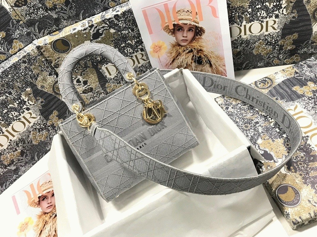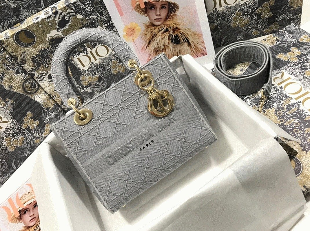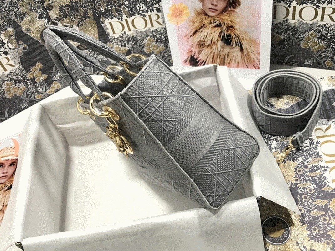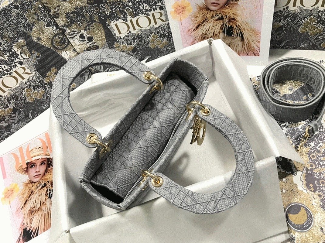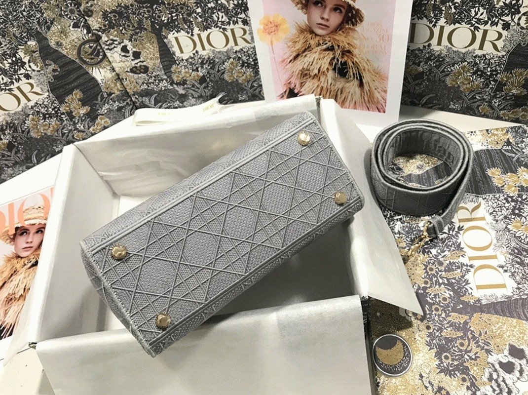 Dior Lady D-Lite Medium Bag Faux in Grey Cannage Embroidered Canvas