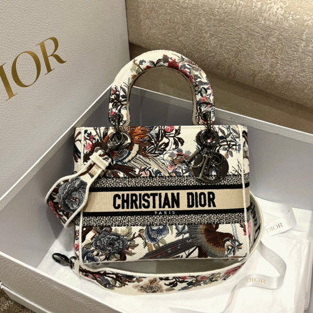 Dior Lady D-Lite Medium Bag Imitation in White Jardin d Hiver Embroidery