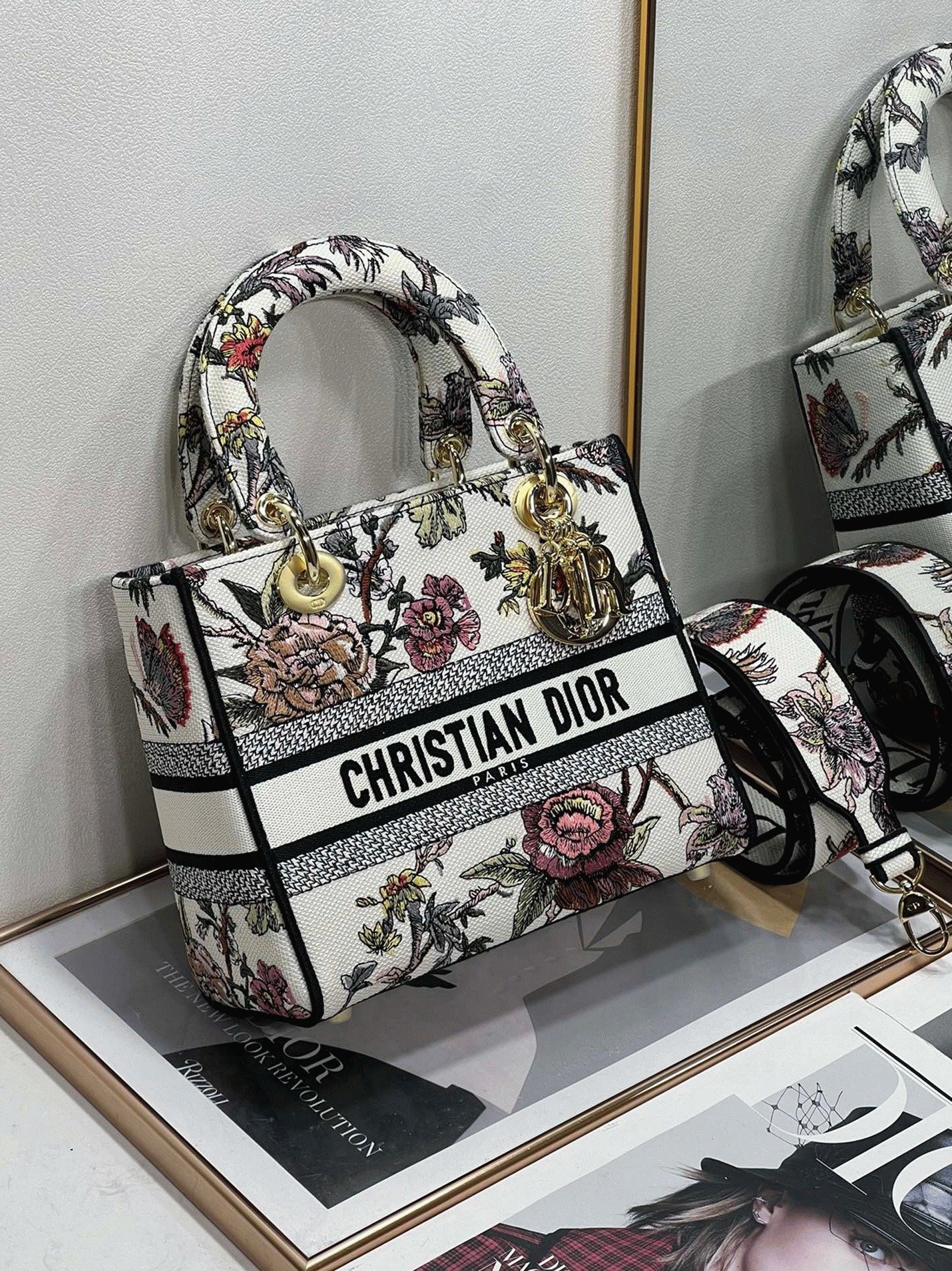 Dior Lady D-Lite Medium Bag Knockoff in Blue Multicolor Rêve d Infini Embroidery