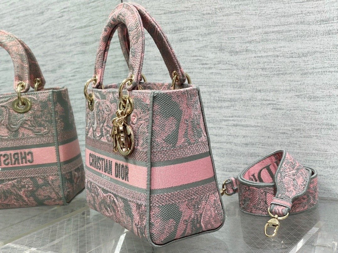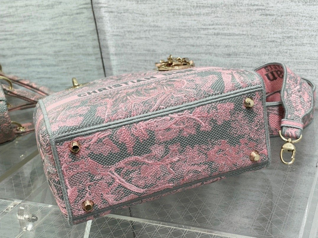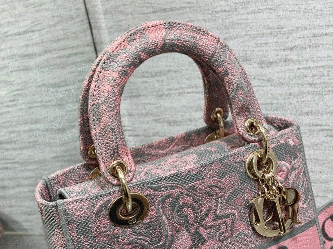 Dior Lady D-Lite Medium Bag Knockoff in Grey and Pink Toile de Jouy Reverse Embroidery