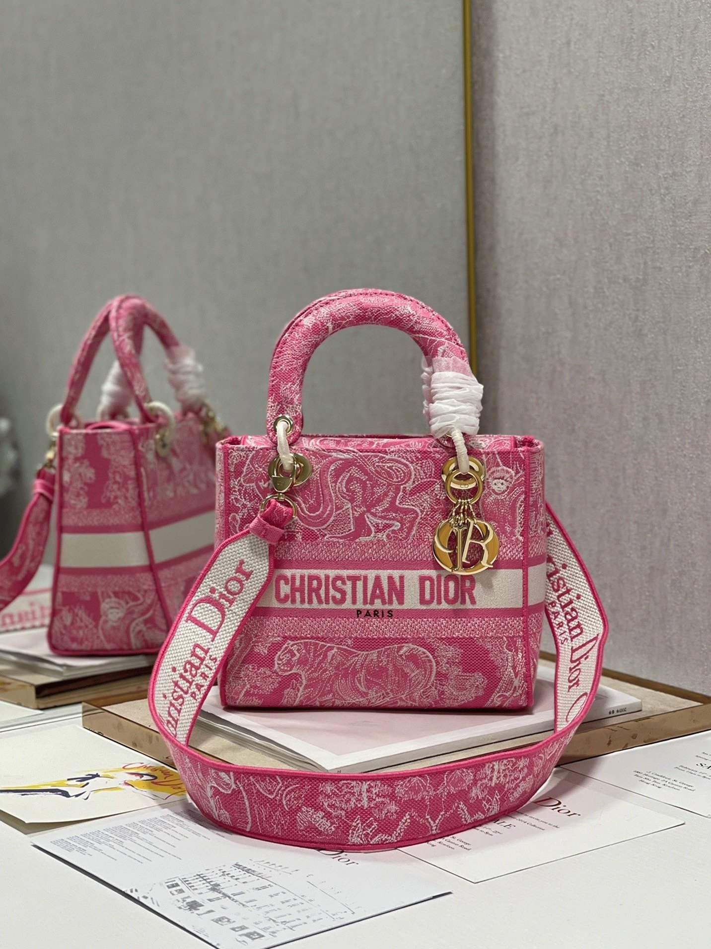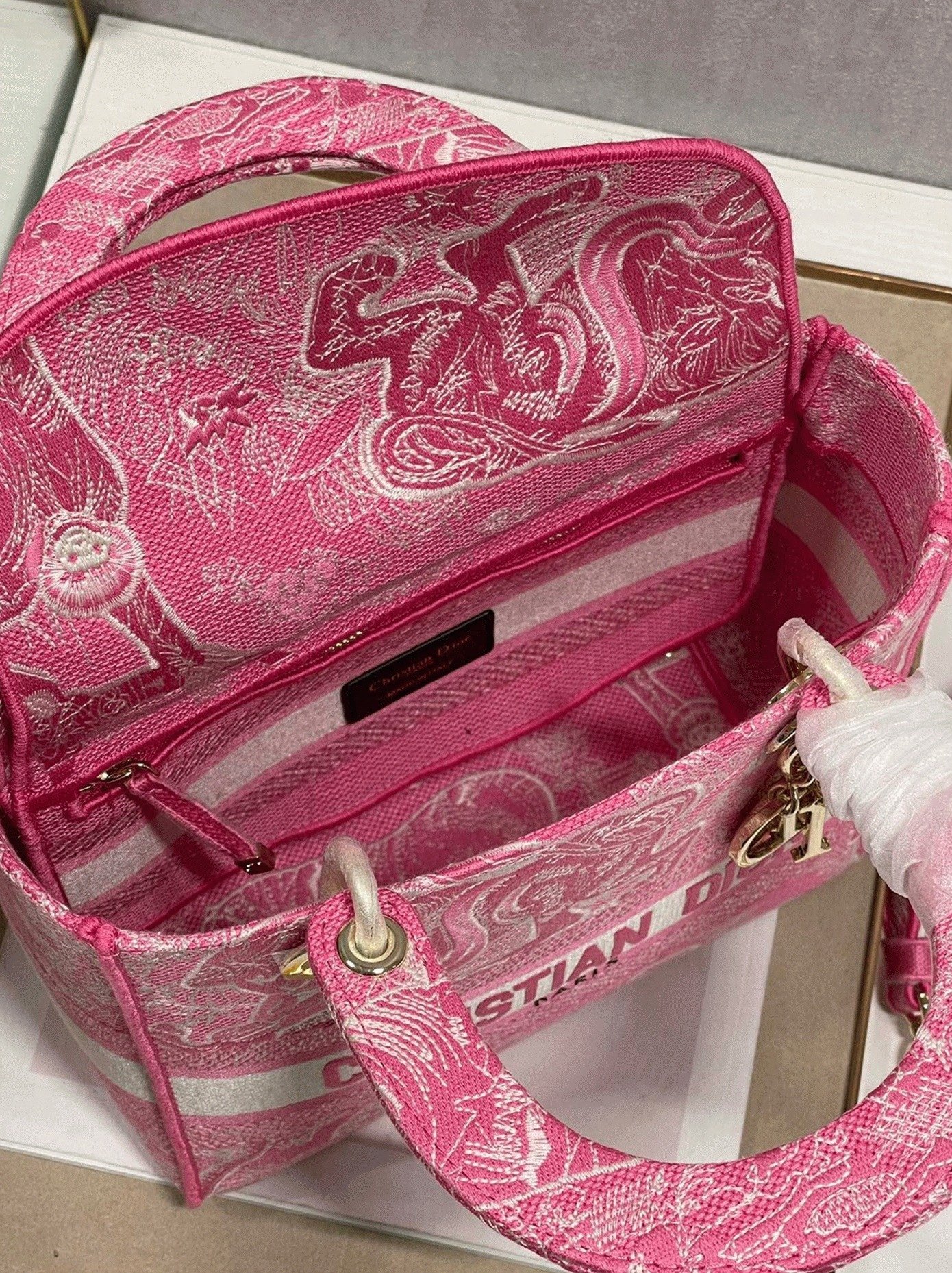 Dior Lady D-Lite Medium Bag Replica in Fluorescent Pink Toile de Jouy Reverse Embroidery