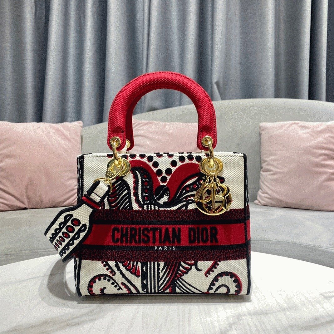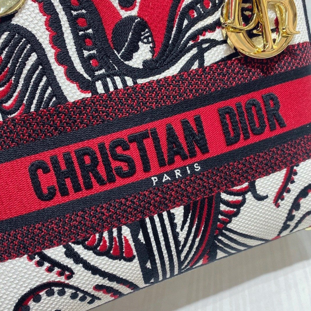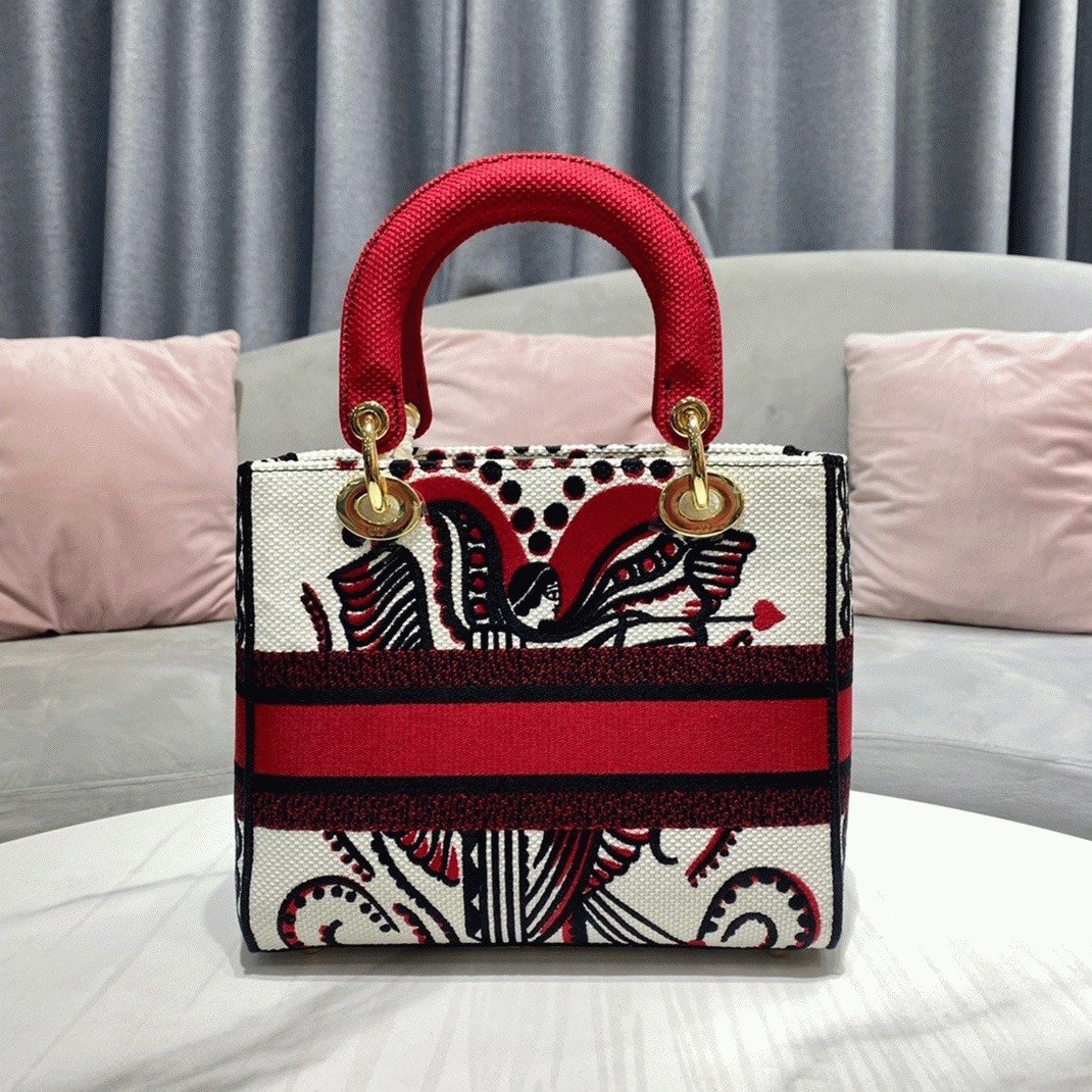 Dior Lady D-Lite Medium Bag Replica in White Multicolor Cupidon Embroidery