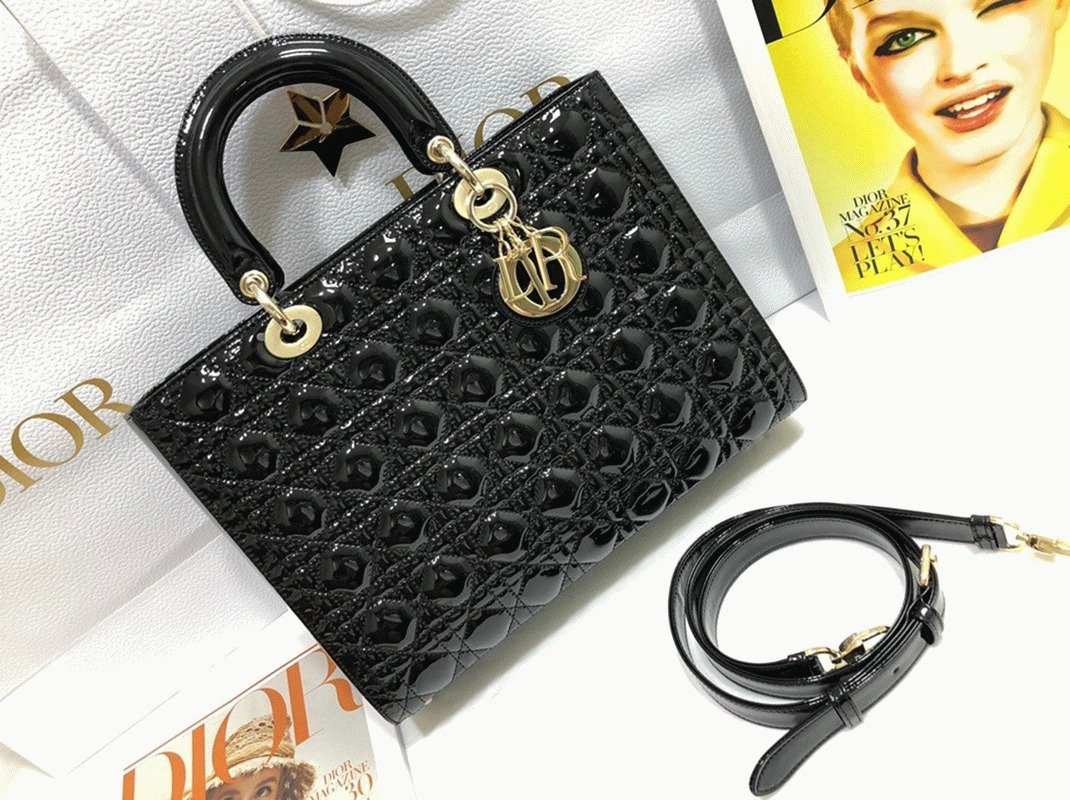 The Lady Dior bag, a true icon for decades, continues to hold a special place in the fashion world. Famous for its unique D.I.O.R. charms and the signature Cannage pattern, this bag pays tribute to the storied legacy of Dior through its thoughtful and elegant design. The Medium size remains a top choice for many, not only because it was the original design but also because of its perfect balance of functionality and style, offering ample space for essentials without being overly bulky.