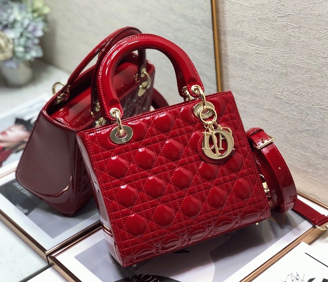 Dior Lady Dior Medium Bag Fake in Red
