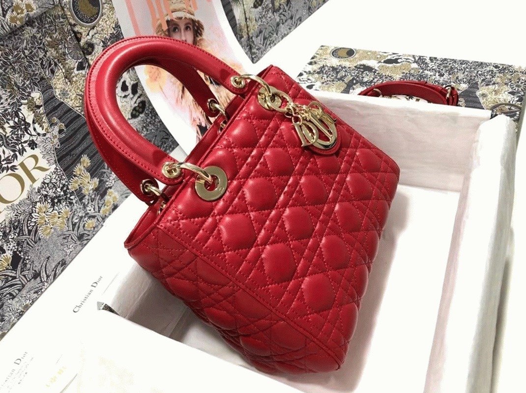 Dior Lady Dior Medium Bag Faux in Red