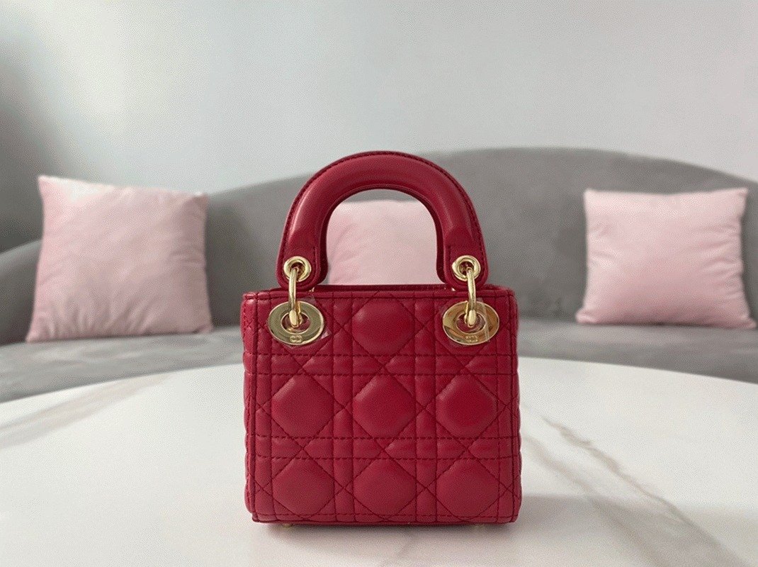 Dior Lady Dior Micro Bag Replica in Red Cannage Lambskin
