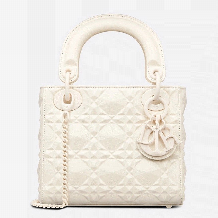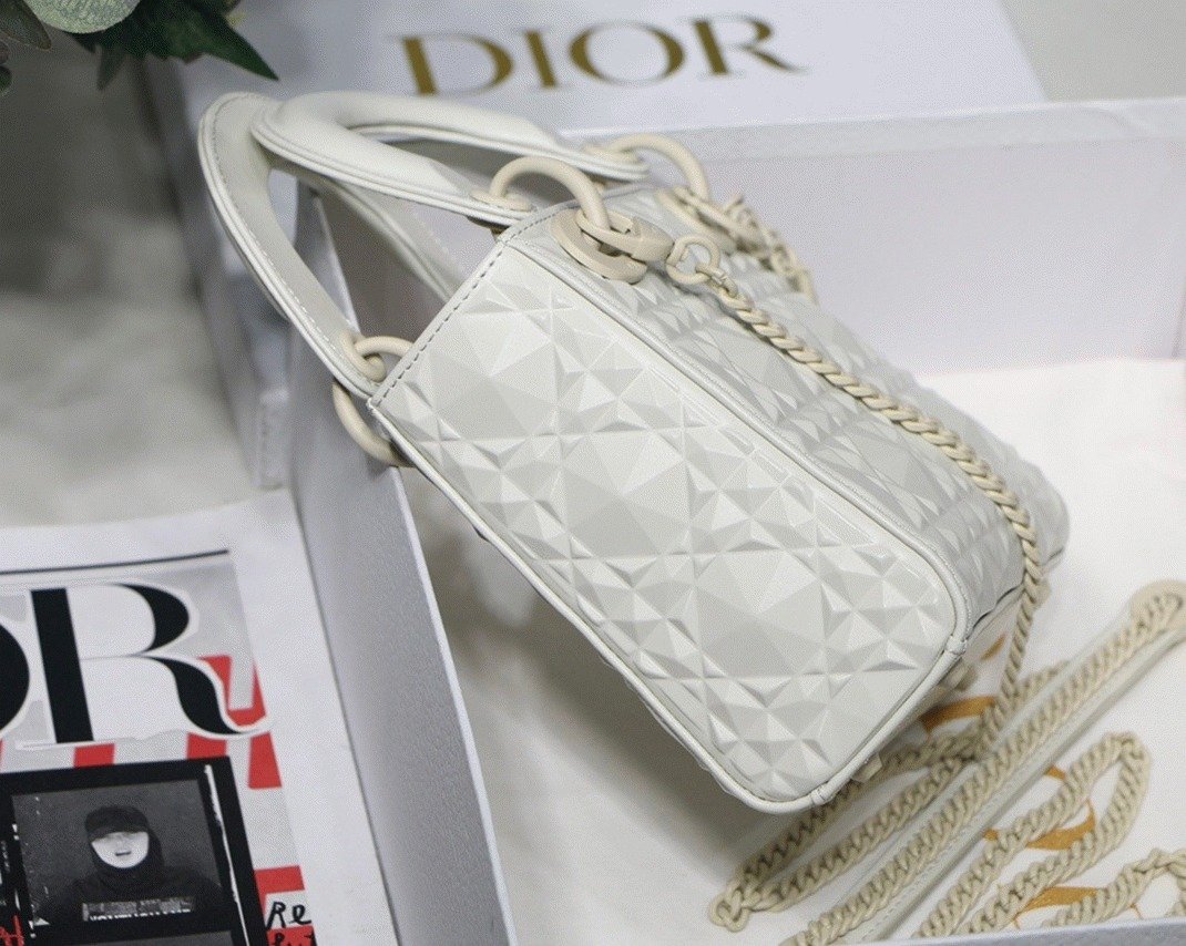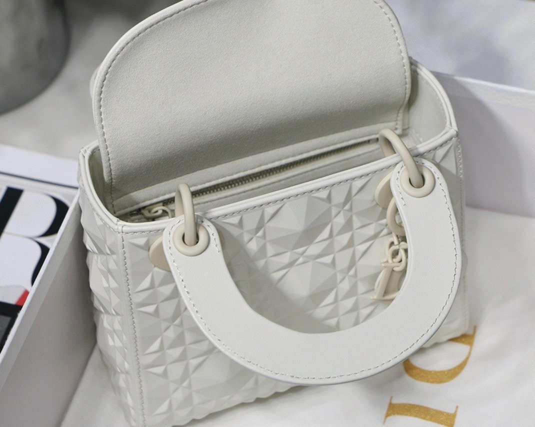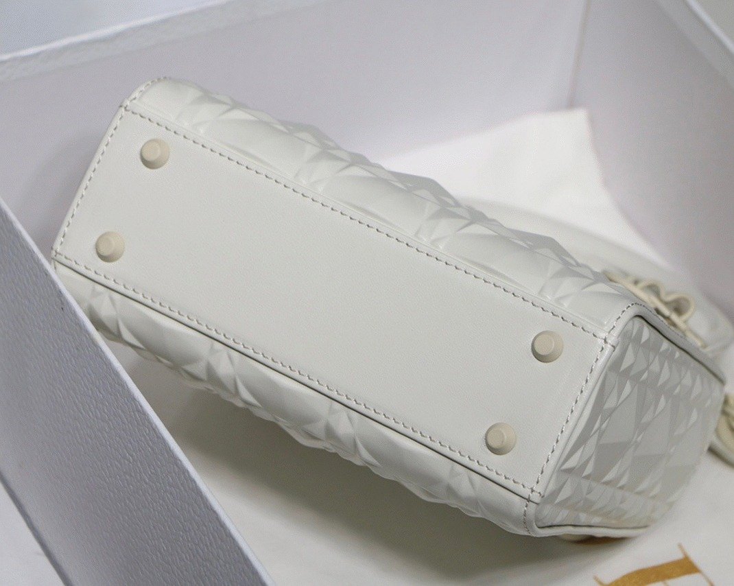 Dior Lady Dior Mini Bag Knockoff in White Calfskin with Diamond Motif