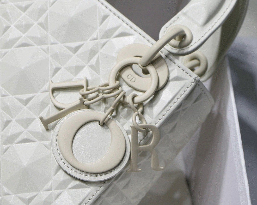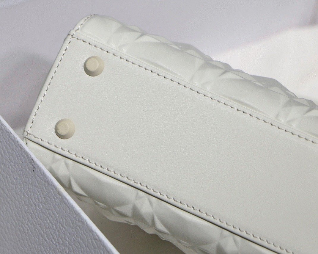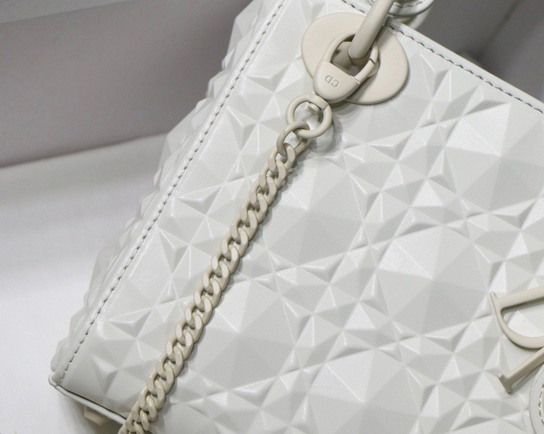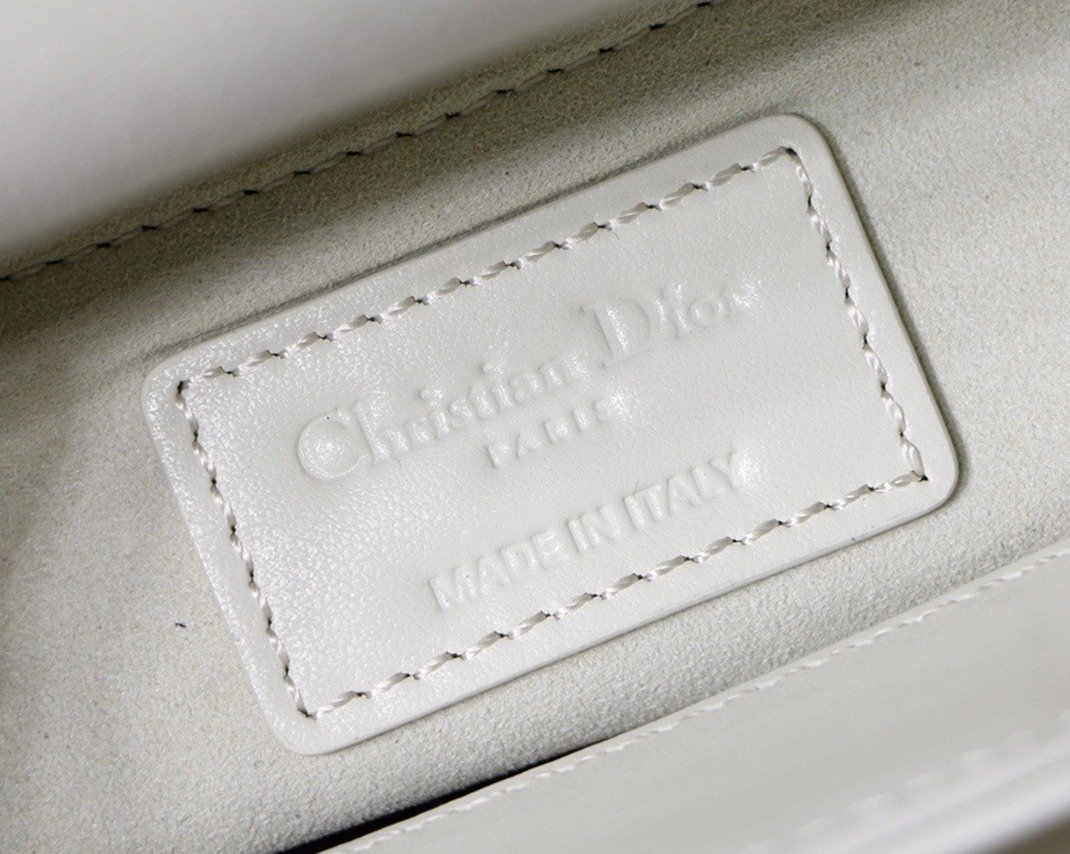 Dior Lady Dior Mini Bag Knockoff in White Calfskin with Diamond Motif