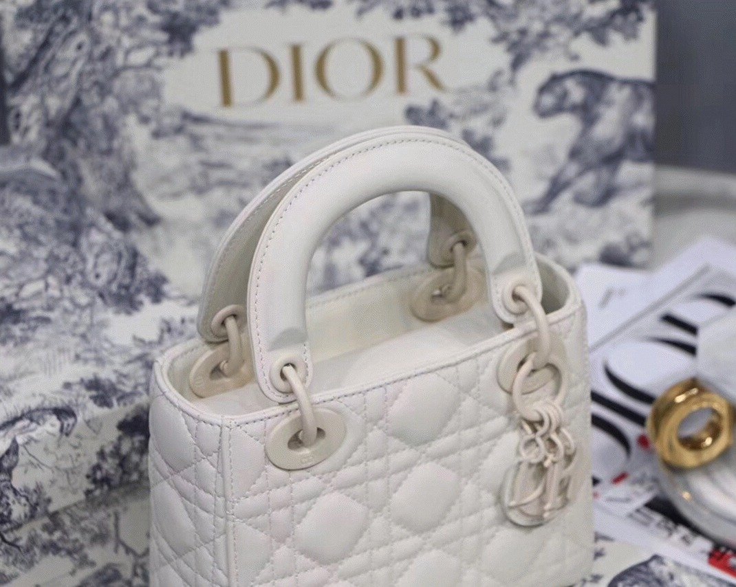 The Lady Dior bag captures the very spirit of the Houses elegance and charm. This classic piece is expertly crafted from patent calfskin featuring the signature Cannage quilting, which gives it a unique textured appearance. Accented with pale gold-tone metal ‘D.I.O.R.’ charms, this mini version of the Lady Dior includes a detachable chain shoulder strap for versatile wearcarry it by hand or wear it crossbody, perfect for evening occasions.