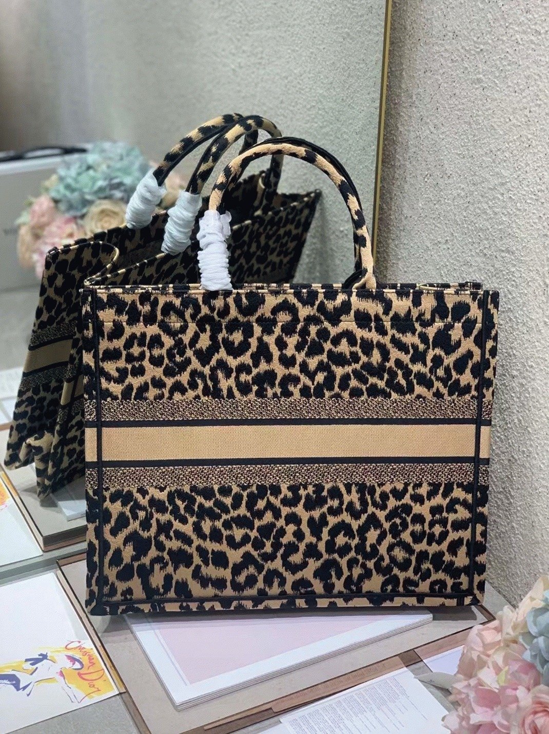 Dior Large Book Tote Bag Fake in Beige Multicolor Mizza Embroidery