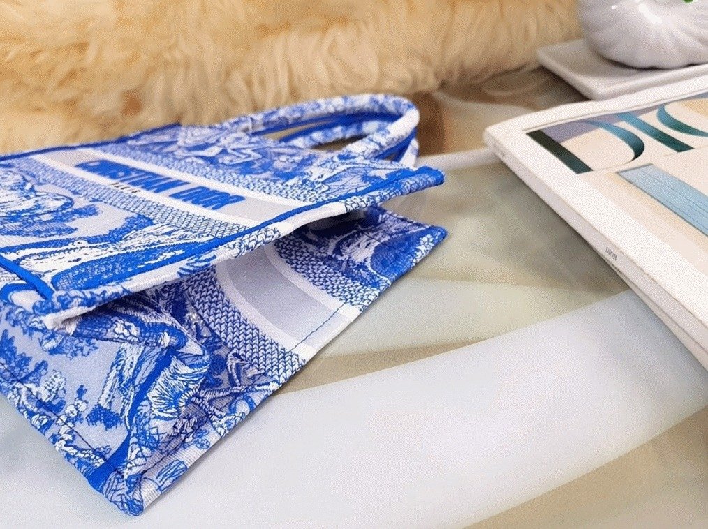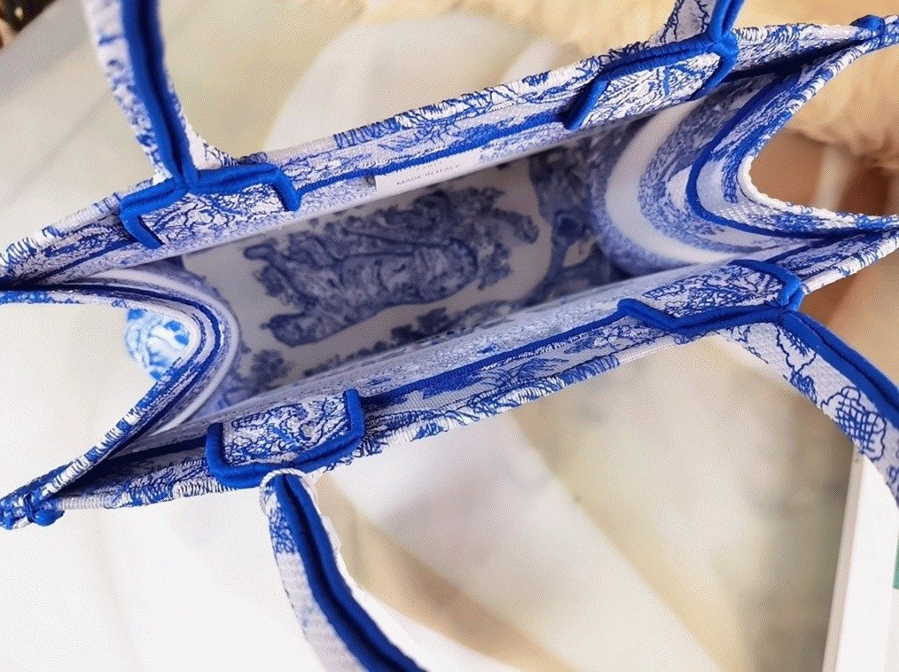 Dior Large Book Tote Bag Fake in Blue Transparent Toile de Jouy Canvas