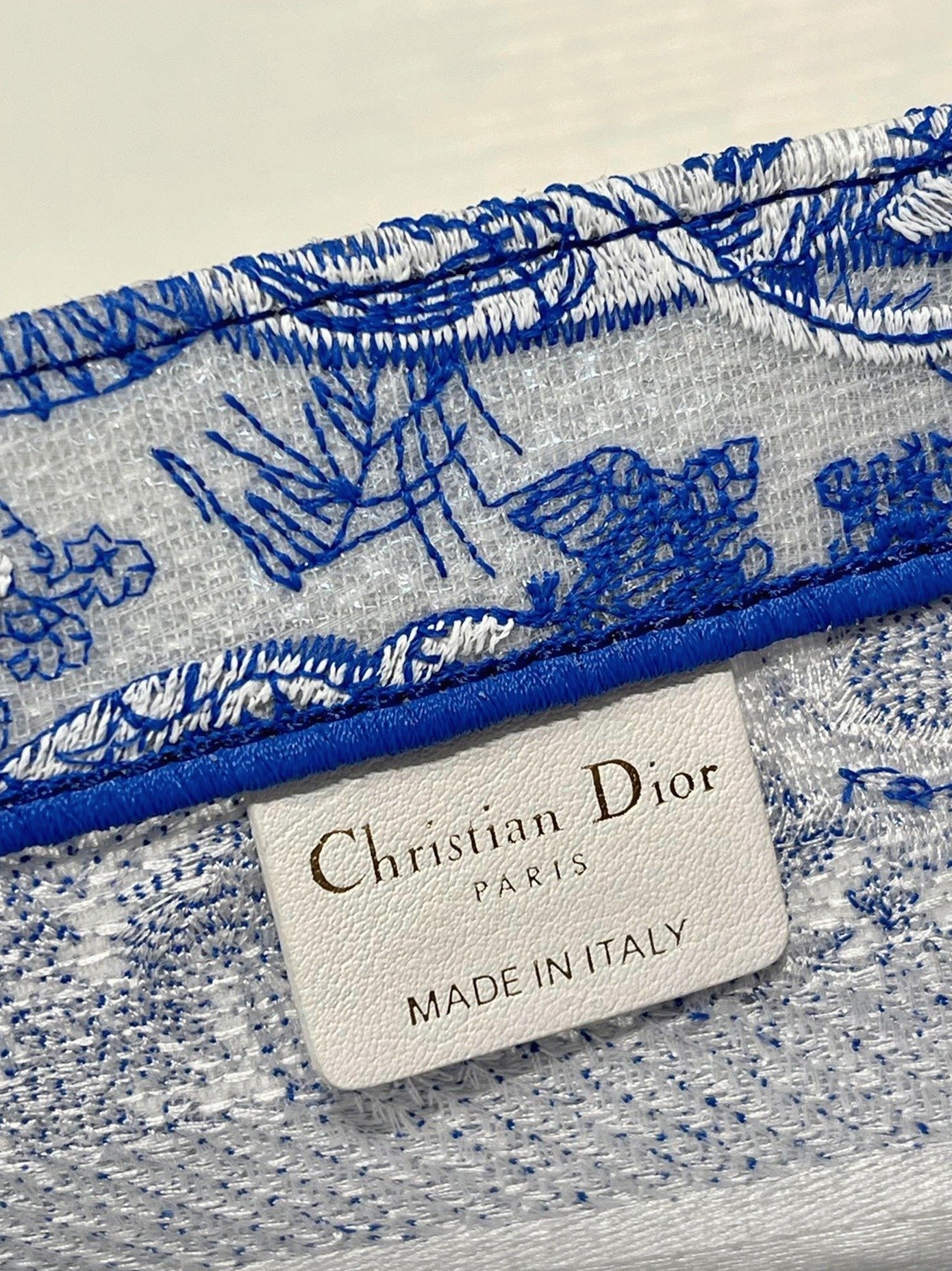 The Dior Book Tote, designed by Diors Creative Director Maria Grazia Chiuri, has become an iconic piece within the Houses collection. This edition, part of the DiorAlps capsule, showcases a fully embroidered blue three-tone pattern featuring Christian Diors lucky star and the prominent CHRISTIAN DIOR signature on the front. Demonstrating the brands exquisite craftsmanship, the tote can be carried by hand or over the shoulder and complements other DiorAlps pieces perfectly.