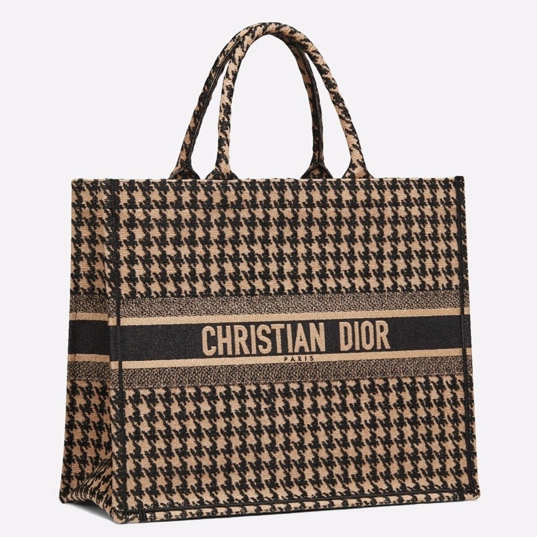 Dior Large Book Tote Bag Replica in Beige Houndstooth Embroidery Canvas