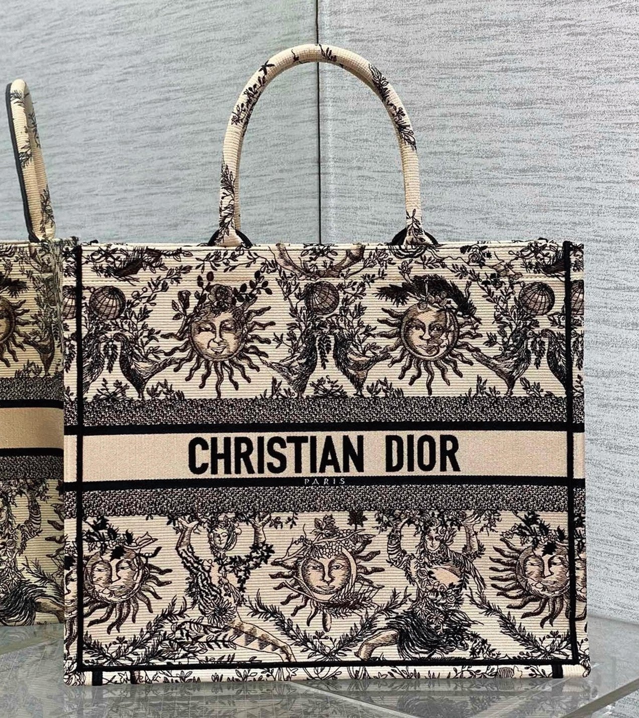 Dior Large Book Tote Bag Replica in Beige Toile de Jouy Soleil Embroidery